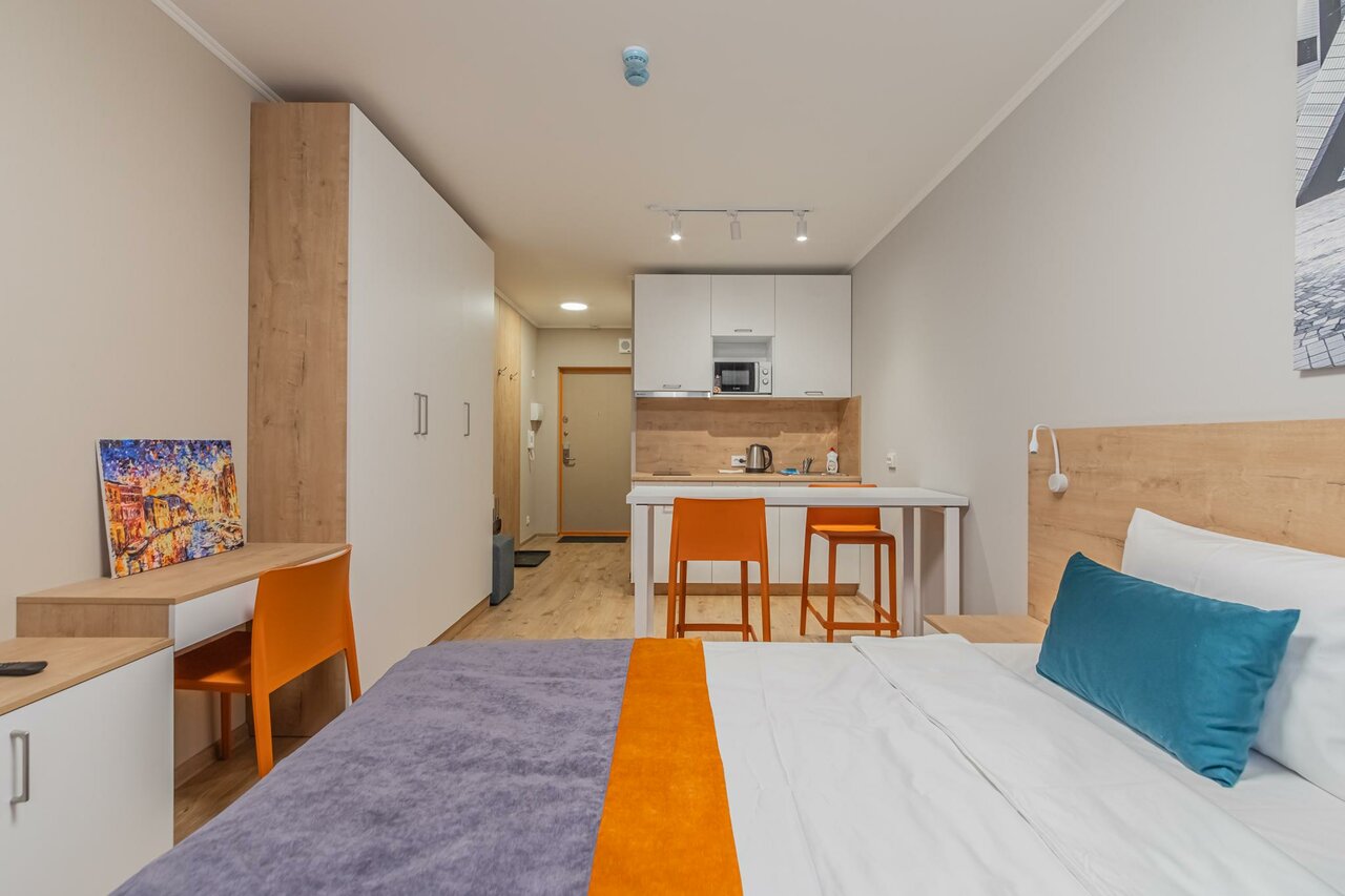Отличное место для снятия апартаментов , рядом метро Парнас. Во дворе куча кафешек , магазинов, куилинарий , а также !!! Бюджетная столовая , которая работает с 10 утра до 10 вечера. Единственное, проблема с парковками , если не повезёт , то придётся искать где-то за территорией Снимали уже не одни апартаменты В квартирах чисто , нет посторонних запахов Фотографии на сайте полностью соответствует Рекомендуем Бродячие артисты со стажем