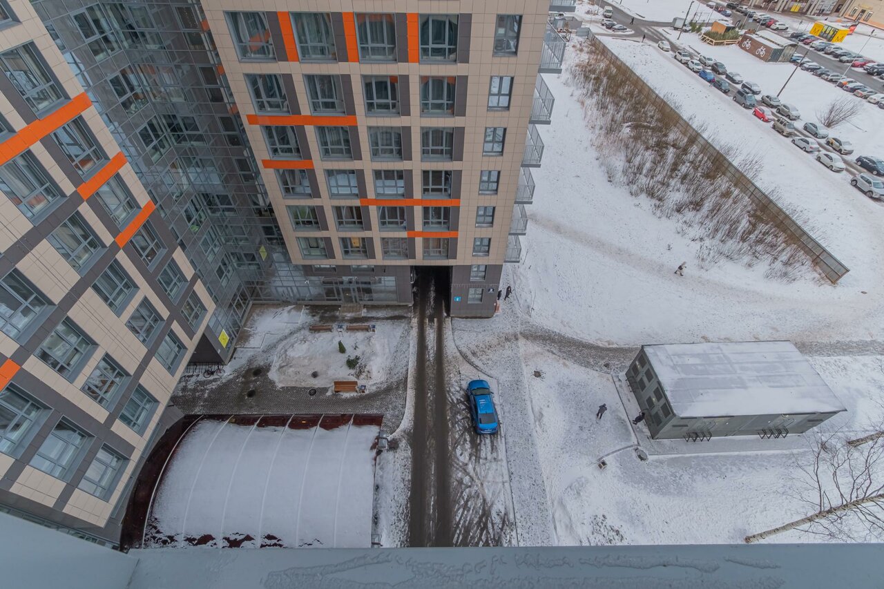 Удобное расположение от метро, свежий район, много кафе и магазинов в самом ЖК. До центра примерно час езды, в целом все устроило