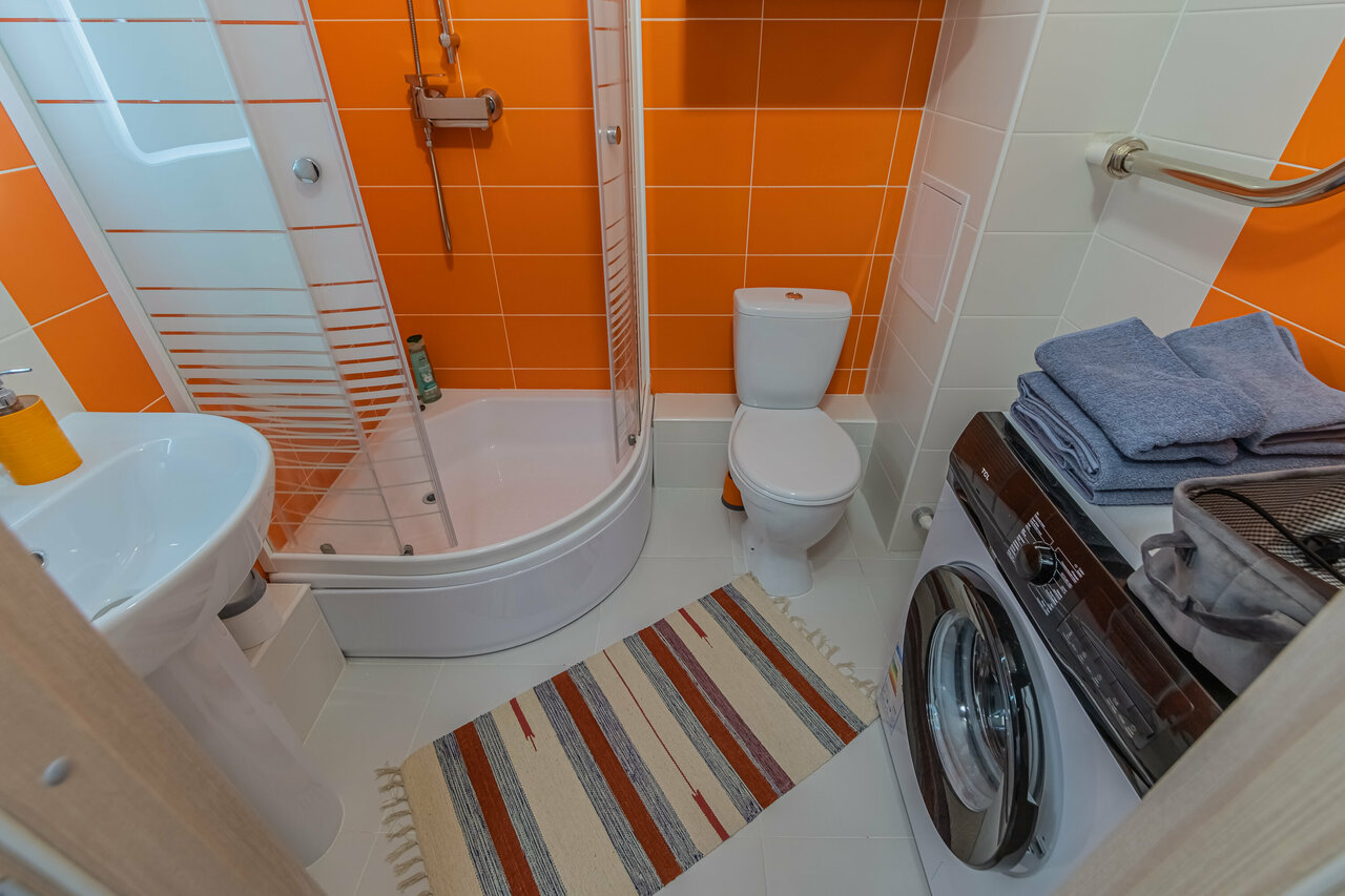 Чисто, уютно, все удобства. Холодильник, стиральная машина, микроволновка, посуда, инвентарь и т. д. Короче, для проживания всё есть.