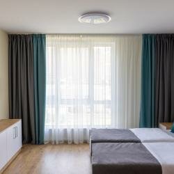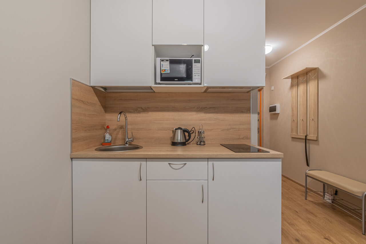 Приличные номера для жизни. Чистые и опрятные номера. От метро 10 минут ходьбы. Рядом продуктовые магазины, общепиты, аптека. Вежливые и приветливые администраторы. Но единственное ,желательно обустроить территорию вокруг ЖК — сделать нормальную дорожку пешеходную ,вместо деревянного настила и убрать с подходов домов.
