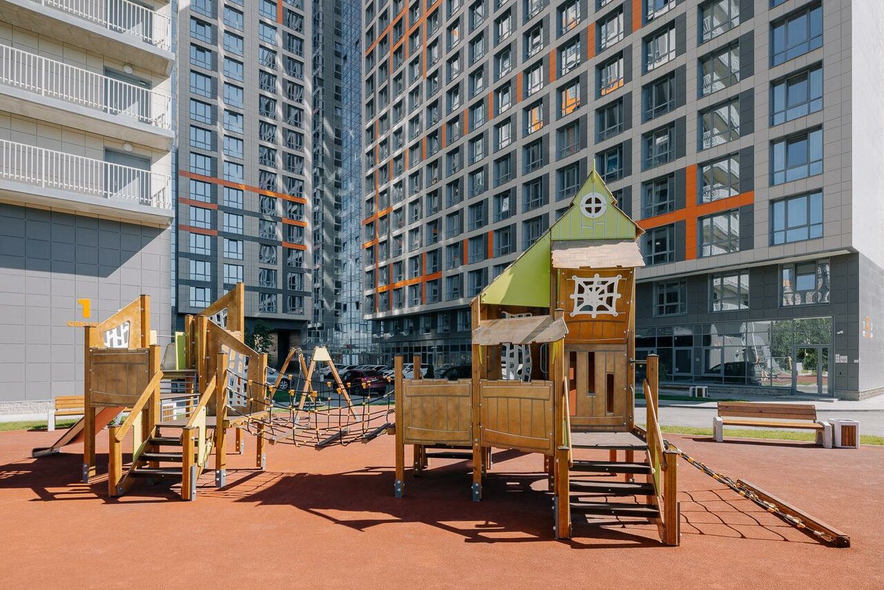 Новый дом, построен в интересном стиле, стоит поодаль от других домов,ухоженный двор в детской площадкой,хорошая управляющая компания, рядом метро и торговый центр.