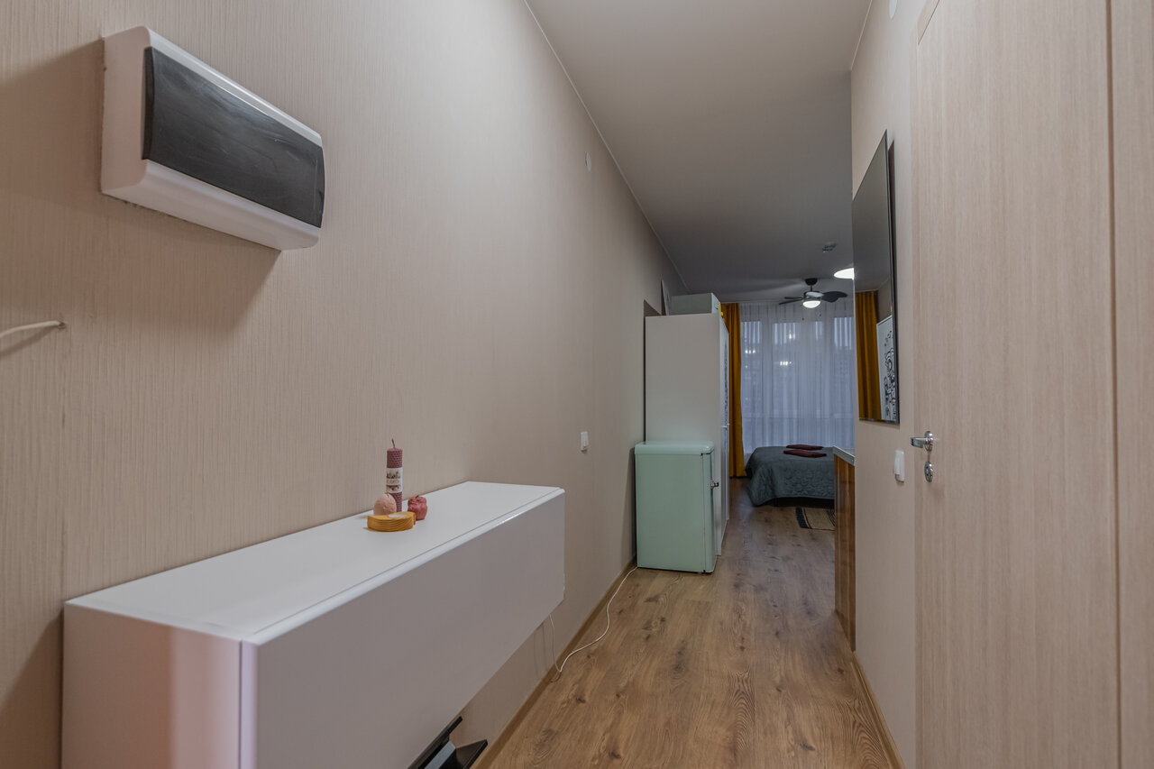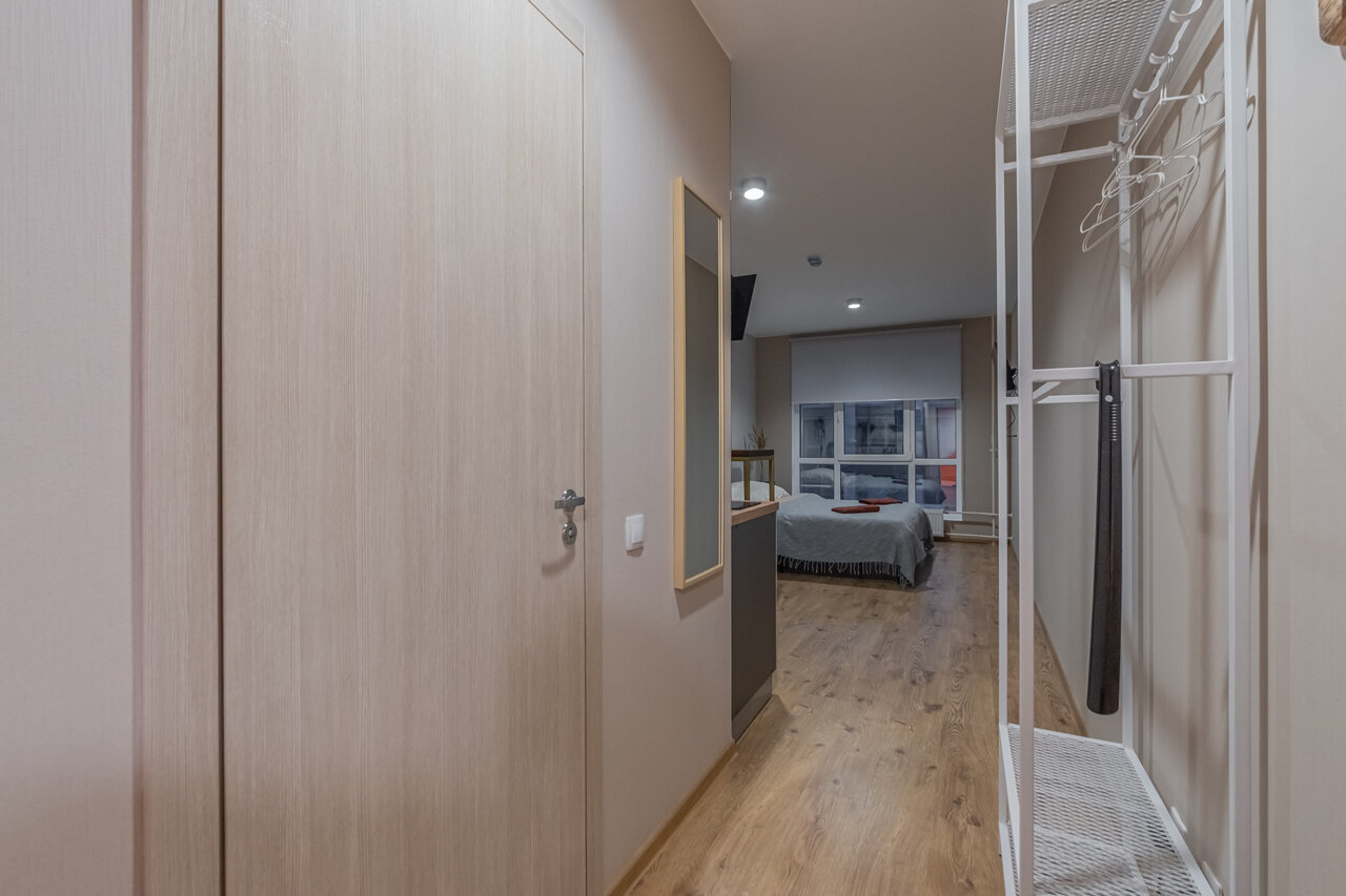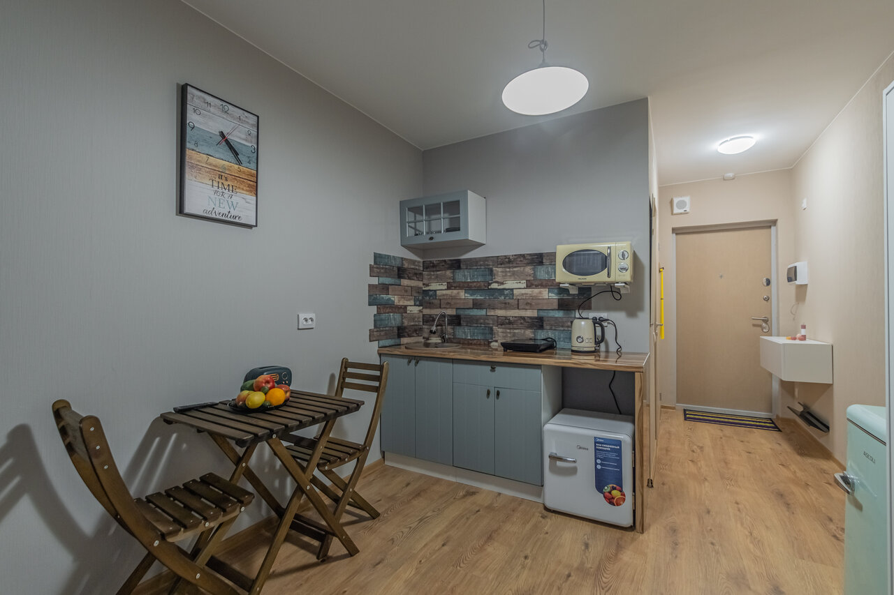 - Все необходимое в номере есть.; Возможность позавтракать и поужинать рядом.; Рядом супермаркеты ("Лента", "Перекресток", "Магнит", "Улыбка Радуги").; Приветливый персонал.; Удобное дистанционное заселение и выселение.