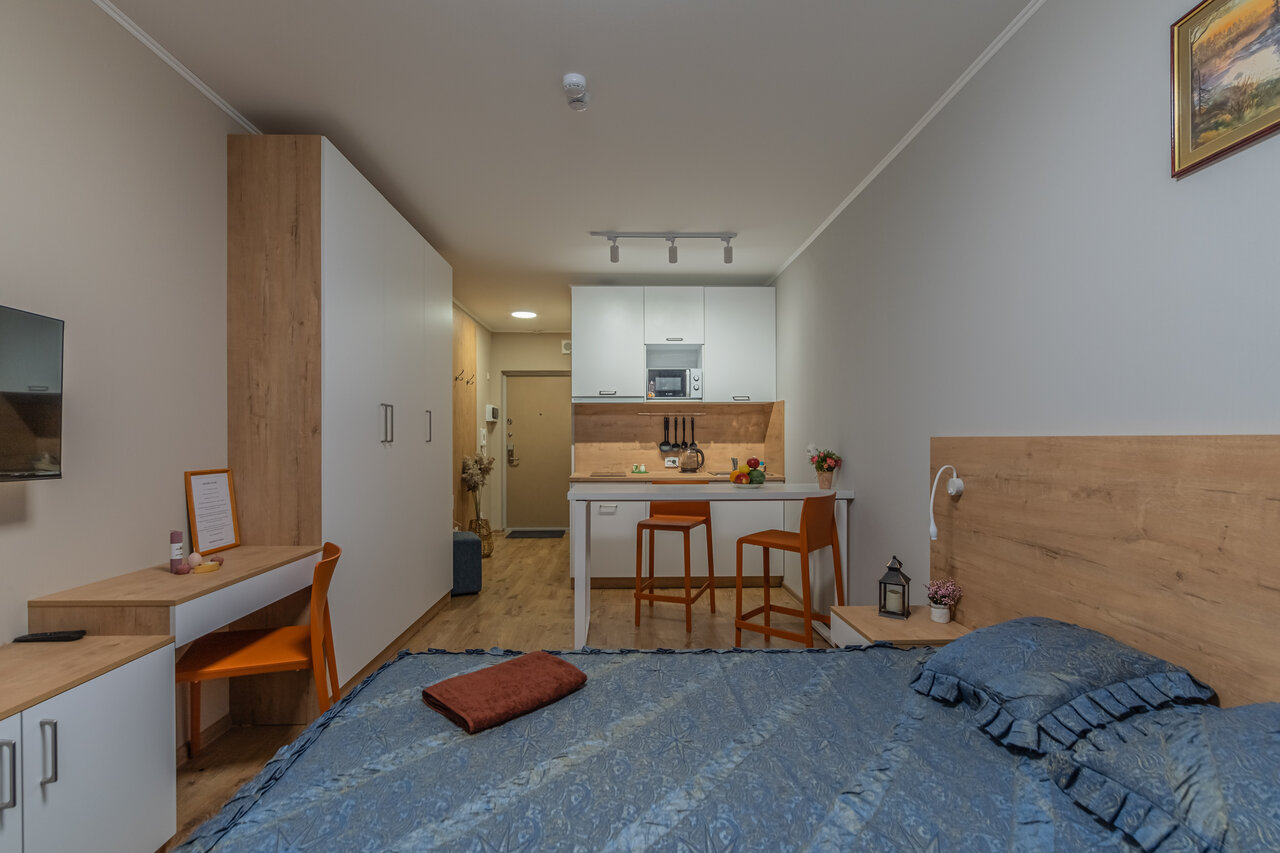 Хорошие апартаменты стандарт, не дорого. Все необходимое в номере есть. Приветливый персонал отеля, все показал и рассказал правила отеля. Я довольна