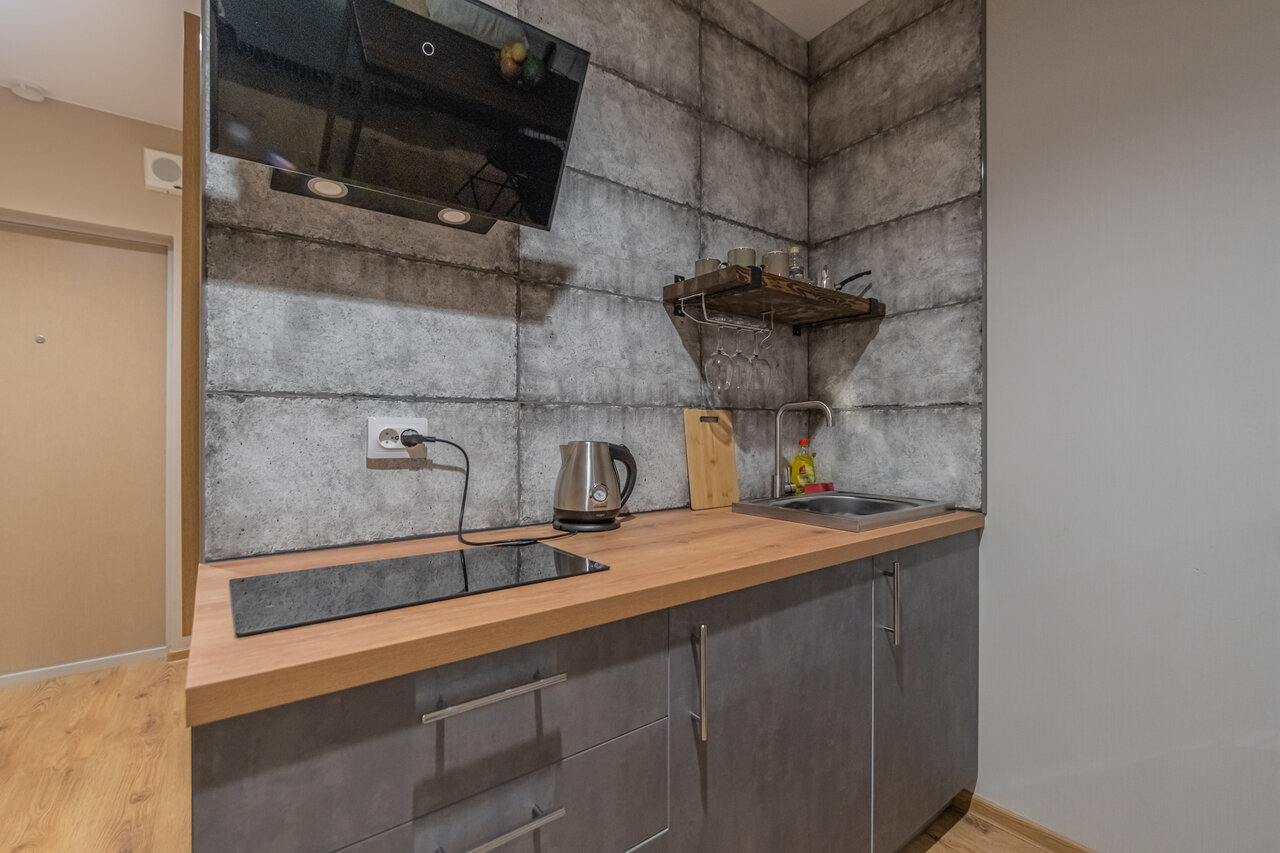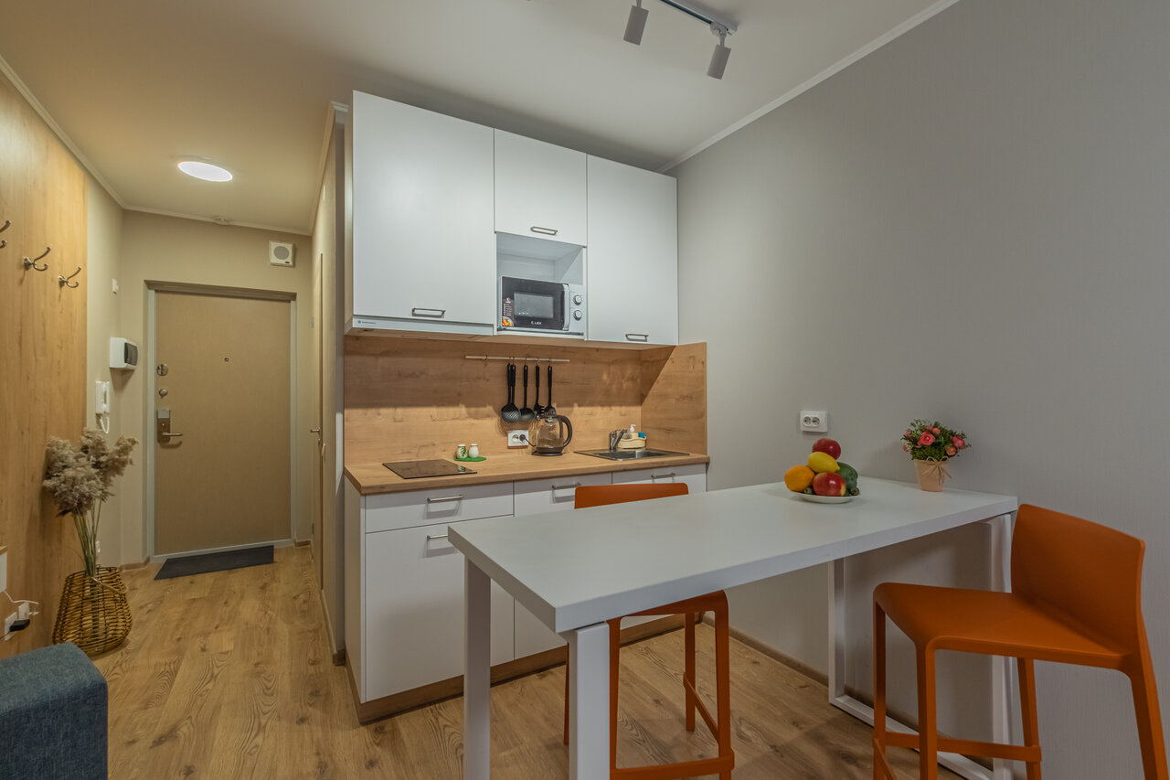 Вполне комфортный отель. Приятно и очень удобно, что есть кухни, посуда и стиральная машина. В номерах чисто и тихо. Останавливались тут дважды. Одно пожелание: добавьте, пожалуйста, в номера хотя бы по одному кухонному полотенцу и средство для мытья посуды. Вытереть воду со столешницы бывает нужно всегда, да и покупать целую бутылку средства, чтобы 2 раза помыть посуду не очень удобно.