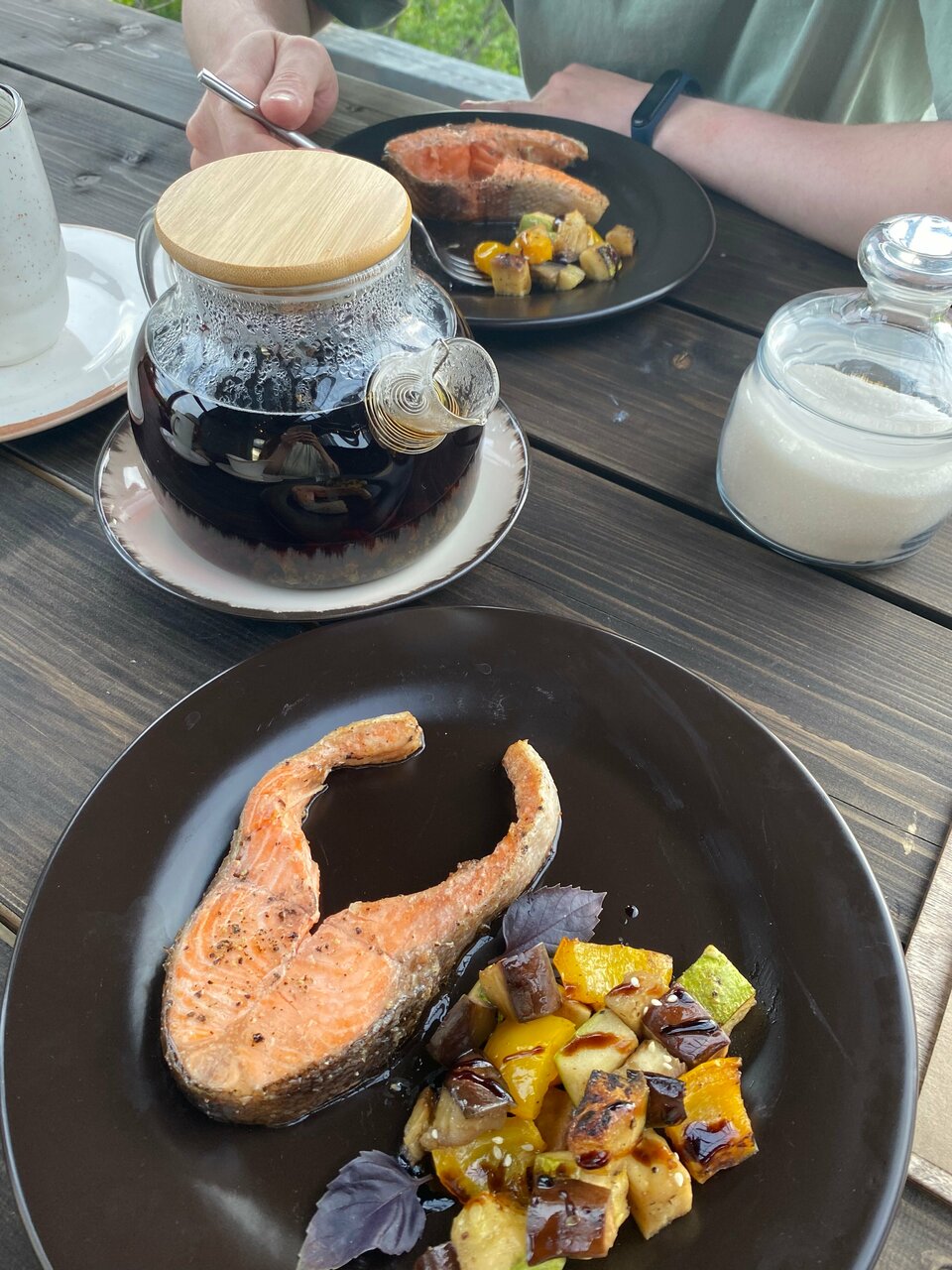 Очень вкусная еда из натуральных продуктов Карелии теплая уютная домашняя атмосфера очень понравилось советую посетить это топовое место в Парконмяках первый этаж ресторан а второй новенькие номера с бомбезными видами на природу