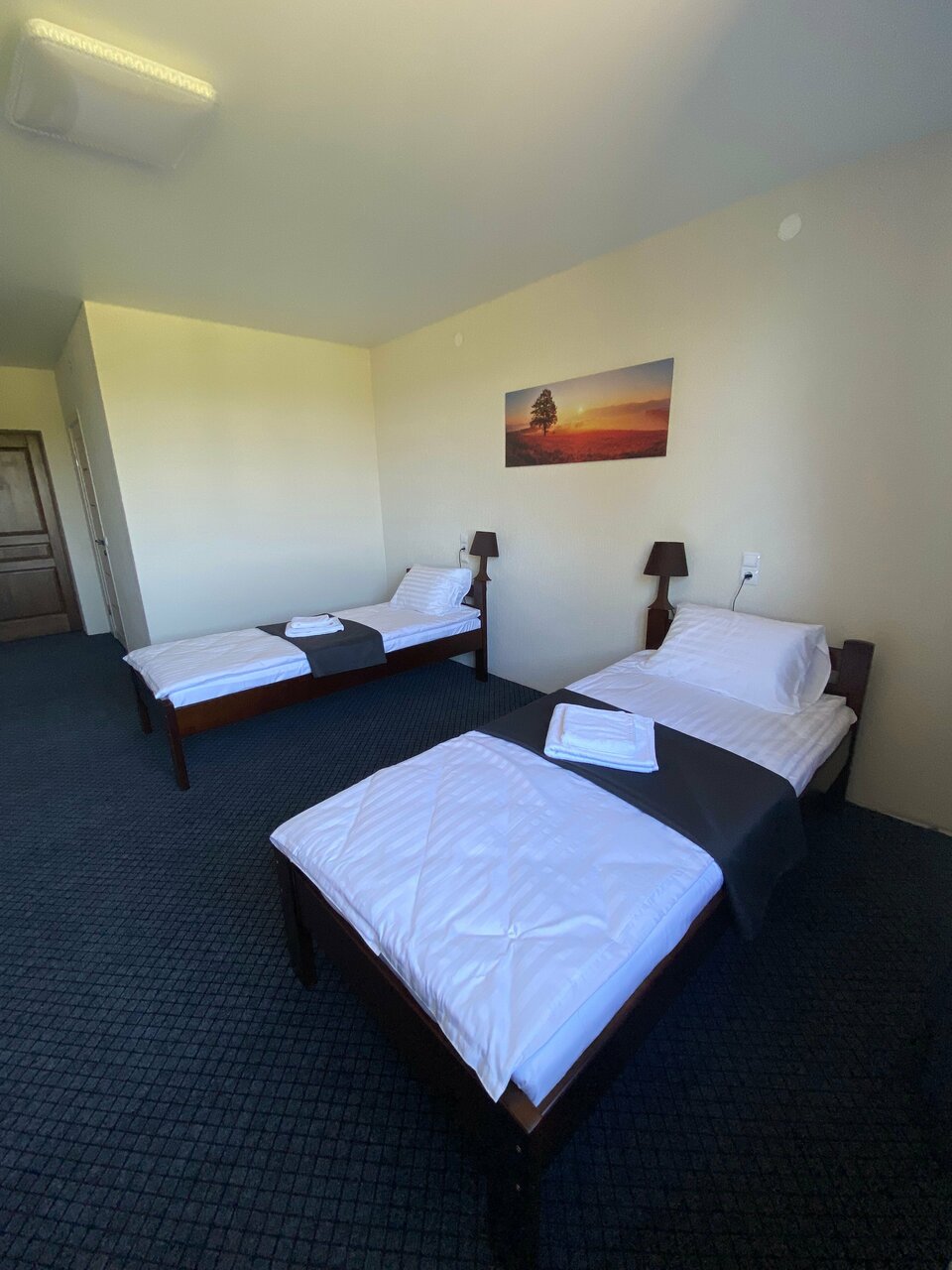 В номере две односпальные кровати, кресло кровать, телевизор, туалет и душ в номере. Есть гостевые средства гигиены, тапочки, полотенца, фен, постельное белье.