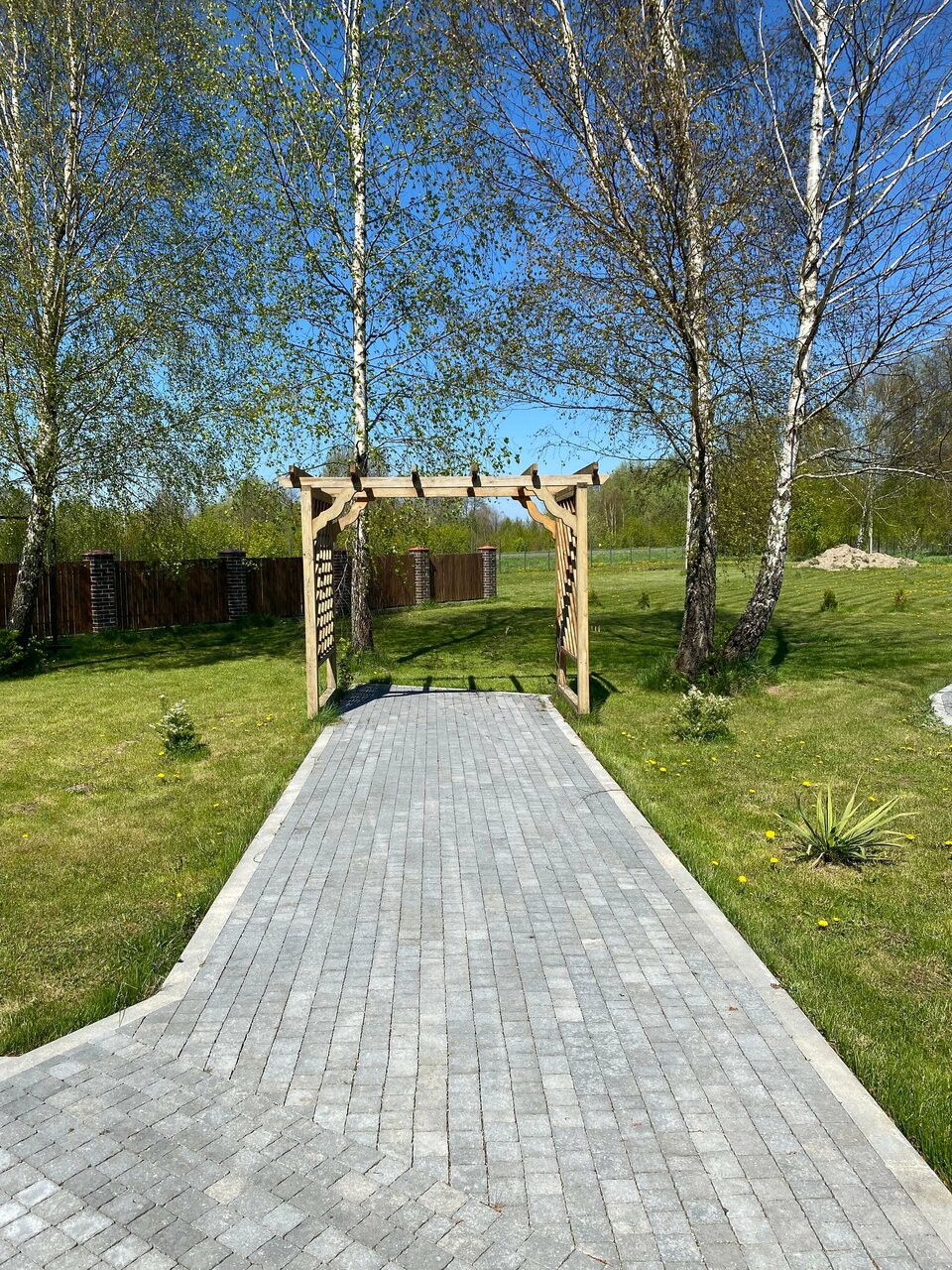 - Большая территория с ухоженным газоном.
