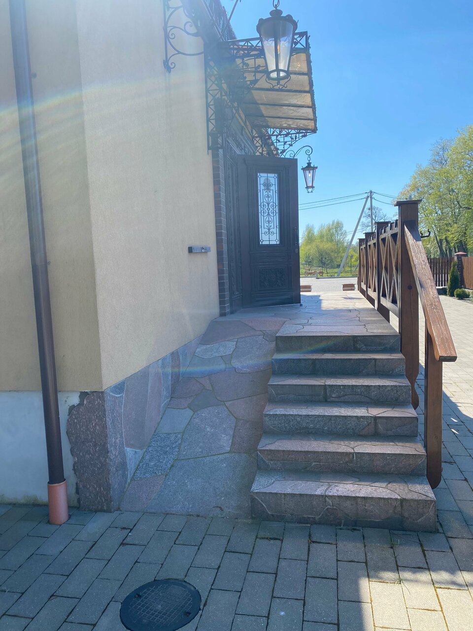 Ехали мимо. Неожиданно заехали. Как раз в 11-00, к открытию. Решили пообедать. Я заказал себе борщ и бифштекс из телятины, жена тушёную баранину, ну и кофе и сок. Покушали, очень вкусно! Не дорого! Порции большие (как в Польше)! Зал очень большой, есть банкетное меню. Приятная музыка. Бильярд! На втором этаже оказывается есть номера, после банкета отдохнуть! Интерьер опять же как в Польше! Красота! Территория большая, стоянка есть для машин! Во дворе загон с оленями! Красота, мы в восторге! Обязательно вернёмся! Спасибо большое!