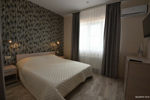 Гостиница «Акварель Клуб» расположена в поселке Пересыпь на Прохладной улице, 9. Это современный гостевой дом (построен в 2018 году) в первой линии у моря, с собственным песчаным пляжем (45 м).