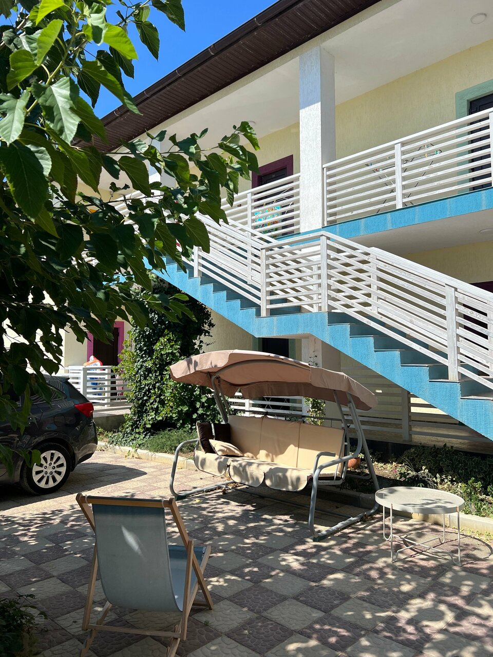 Отдыхали в августе 2022 в 4-х местном номере с кухней на первом этаже. Нам всё очень понравилось. Особенно хочется отметить что набор посуды и постельного белья сразу был в номере на 4-х человек. Не пришлось ходить и просить. При этом были и бокалы, и стаканы, и кружки, тарелки глубокие и плоские (маленькие и большие). В общем по посуде продумано всё до мелочей. Было всё самое необходимое и немного больше. В номере чисто, уборка проводилась каждый день. Выход к морю сразу с крыльца, очень красивый вид. На пляже есть шезлонги и зонтики, душ для ног. Есть открытая веранда с видом на море. Во дворе качели, кресла, тоже уютно. Персонал доброжелательный и отзывчивый. Рекомендую это место ля спокойного и тихого отдыха.