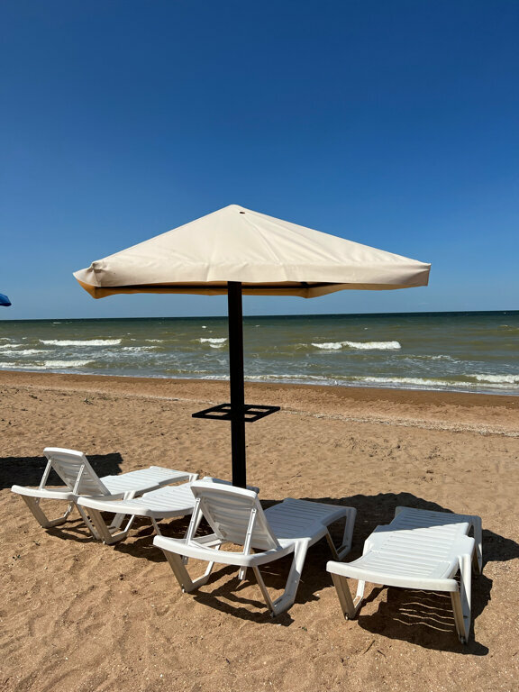 Шикарное место для отдыха, особенно с детьми. Выходишь и сразу пляж. Зонты и шезлонги в наличии. Парковка есть, номера чистые. На веранде приятного посидеть