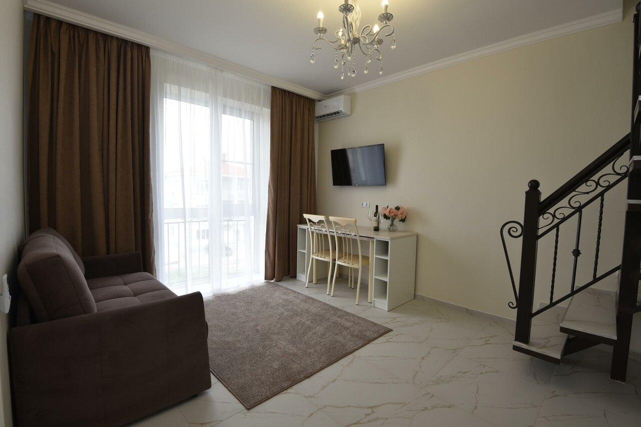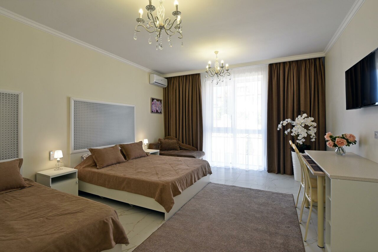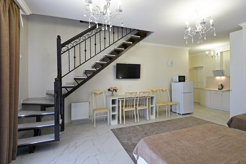 Проживали семьей в Белой Даче несколько дней в июле, бронировали двухкомнатный номер! Отель очень красивый, чистый, ухоженный, номер светлый, белая мебель, небольшая кухня, есть все необходимое, все новое, остались очень довольны! Чистота безупречная, это очень приятно! До моря пара минут, пляж хороший, песочек, заход удобный, с морем тоже повезло, медуз не было, купались! В 5 минутах есть столовая и кафе, до магазина Пятёрочка 10 минут, прогуливались 2 раза в день. Не хотелось уезжать из этого волшебного места! Рекомендуем друзьям и знакомым и сами обязательно приедем еще!