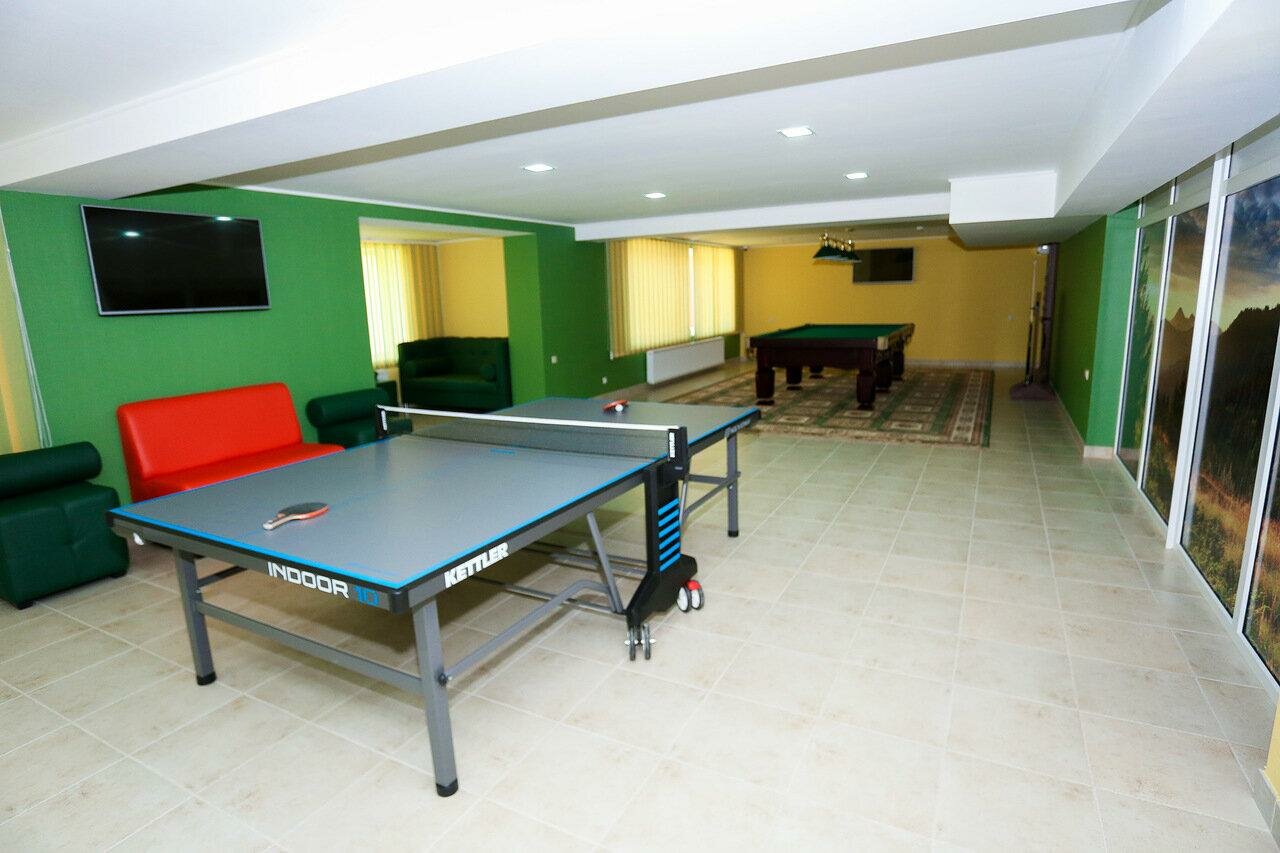На территории: банкетный зал, бильярд, настольный теннис, сад и летняя веранда. В номерах — кухонные уголки, чайники, фены, халаты. Для детей — бесплатные кровати разных возрастов.