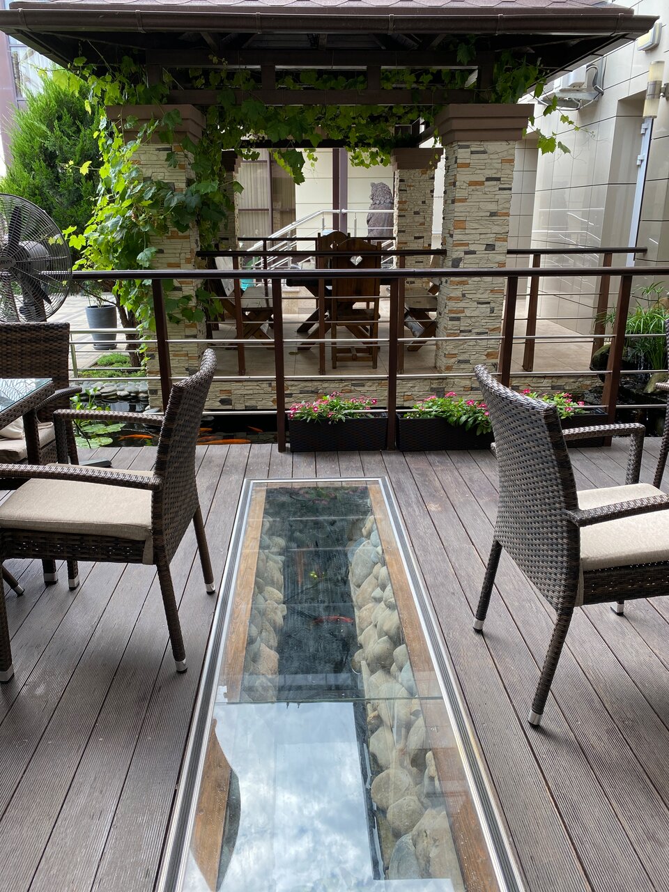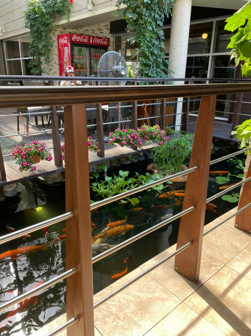 - Красивое окружение (пруд с карпами).