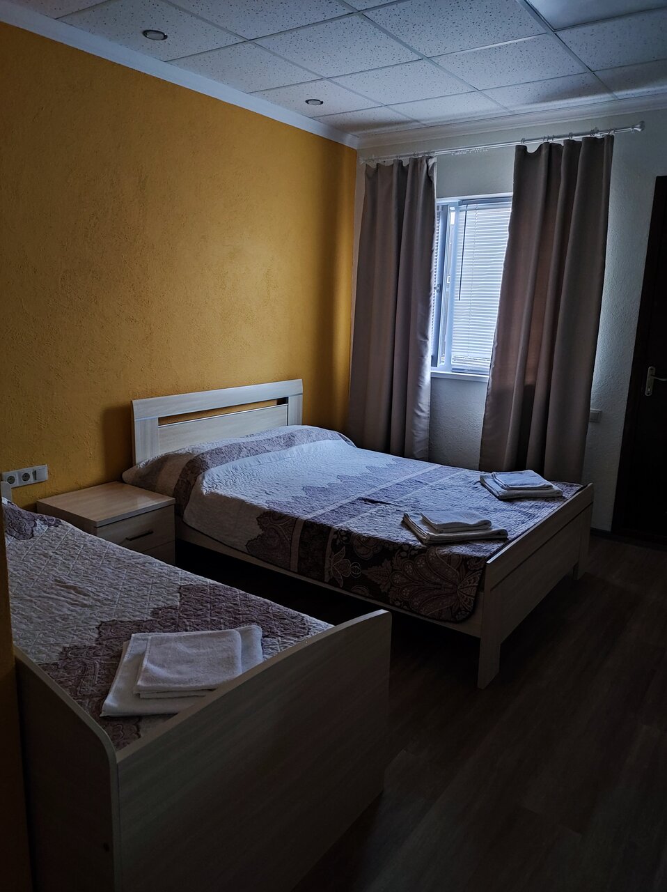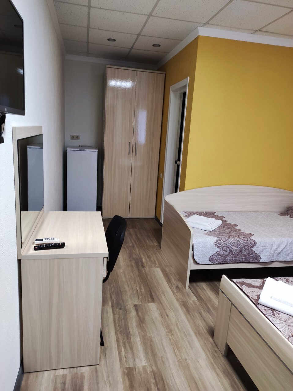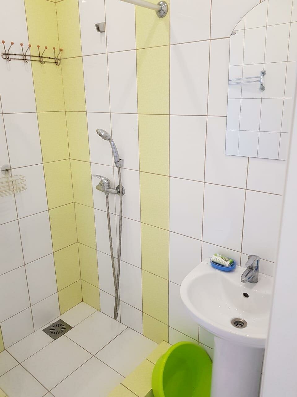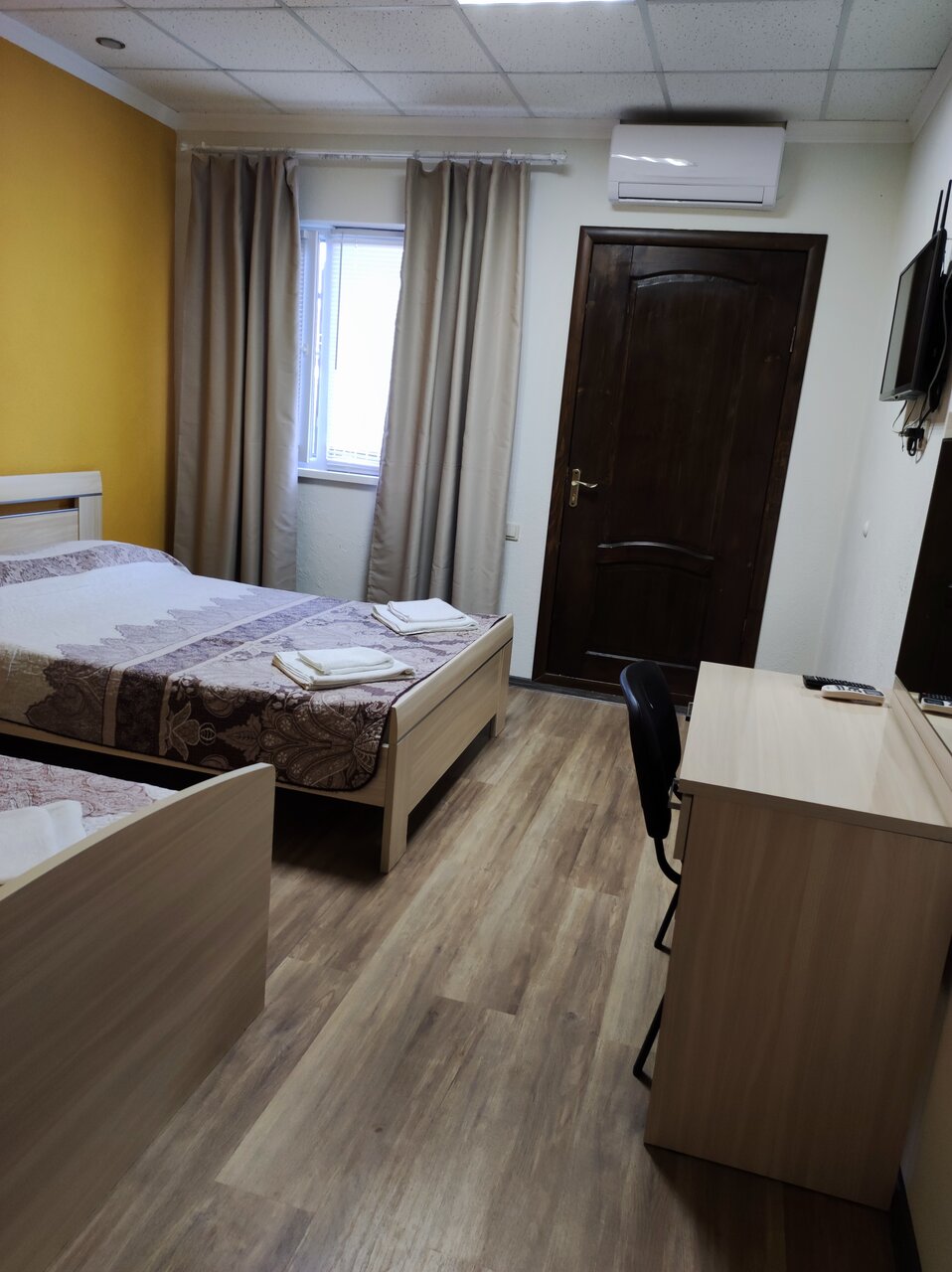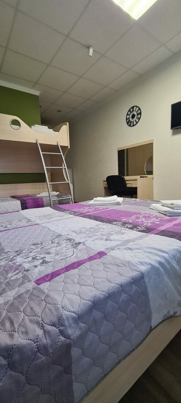 Комнаты расположены на 1-м и 2-м этаже трехэтажного здания. В комнате одна 2-х спальная кровать, тумбочка, шкаф, туалетный столик с зеркалом, холодильник, санузел с душевой кабиной, сплит-система, телевизор, постельное белье и полотенца для душа.