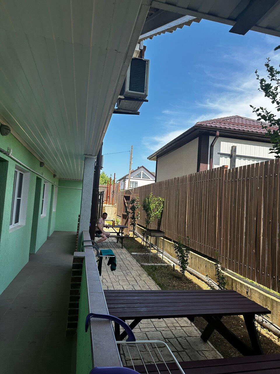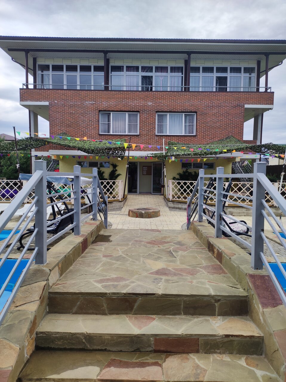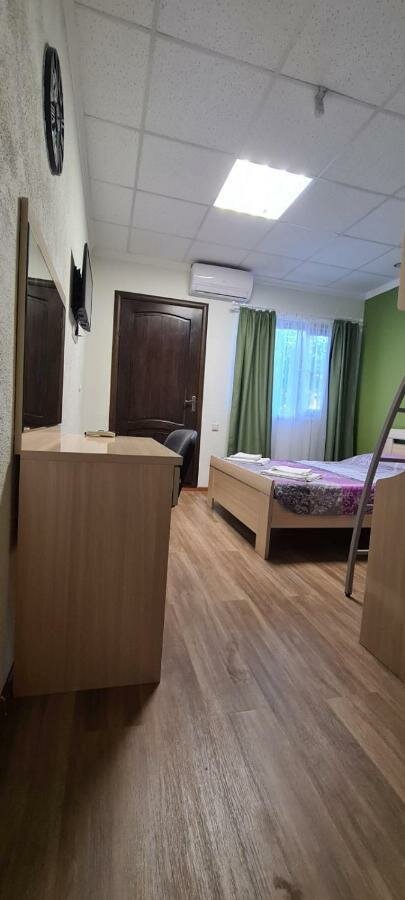 Отличный дом отдыха! Всё продумано и качественно сделано! Чисто и аккуратно! Дети в восторге от бассейна и просторной территории для игр и отдыха . Есть много кресел качелей и лежаков. Номера простые но уютные. Пол ковровый. Удобные кровати, хороший кондиционер. Есть телевизор рабочий всё отлично! Чистая ванная комната! Есть полотенца. Была небольшая проблема с сушилками. И не очень устойчивый стул. Дети пару раз падали. На верхнем этаже общая кухня, очень понравилось что кухня профессиональная. Всё чисто аккуратно! Столы со скамейками как для пикника в парках. Деткам немного не удобно но в целом понравилось! Необычно! На улице есть зона для мангала и пара столов со скамейками. Очень понравилась атмосфера и энергетика дома! Тишина и покой!