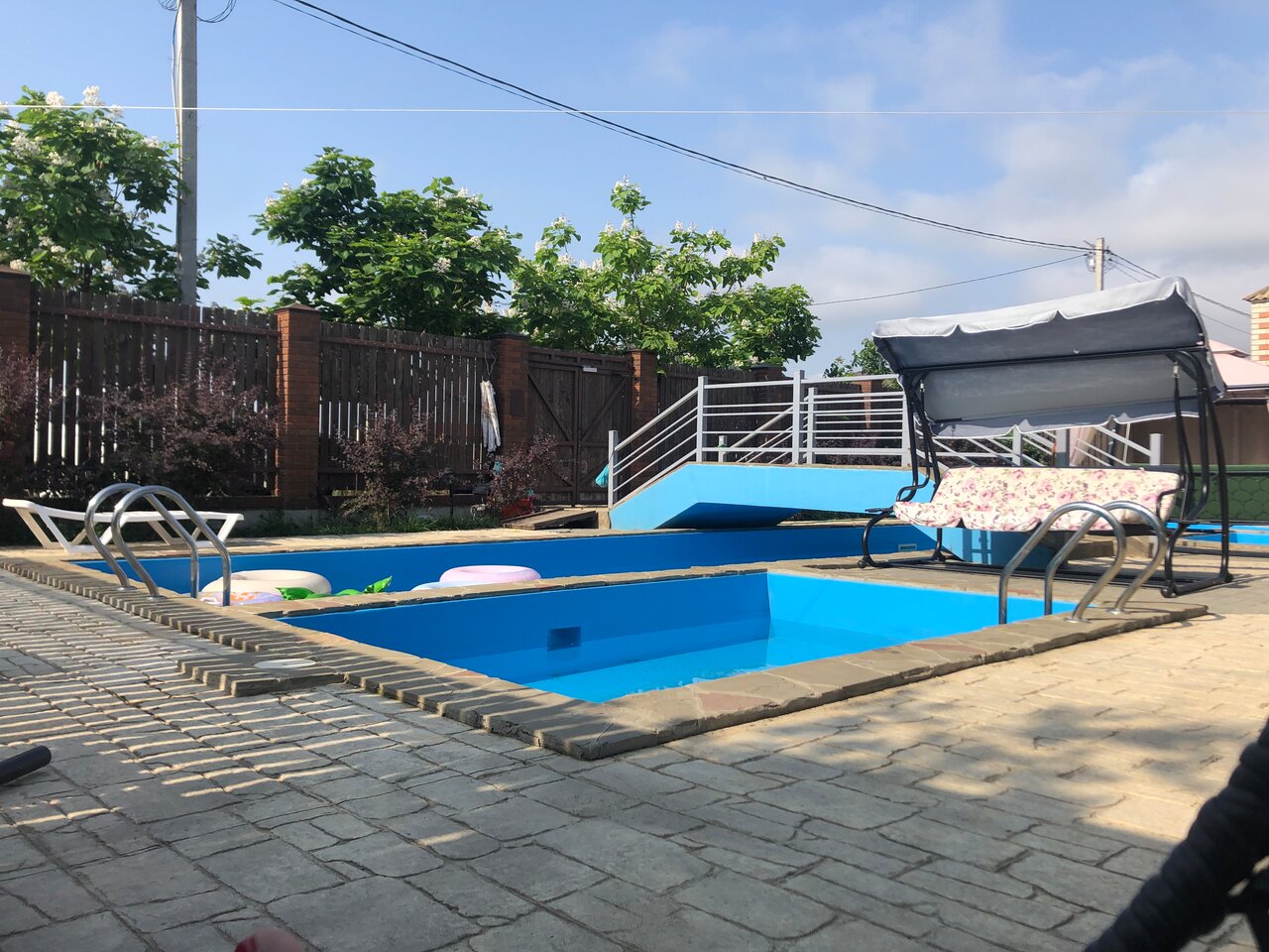 Отличный бассейн. 2 детских, разной глубины. Номера чистые, есть мангал, решетки, шампуры, кухня. Людей мало, очень комфортно отдохнули в тишине и спокойствии! Море близко, но оно своеобразное) Хочется приехать еще!