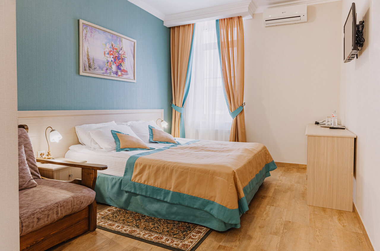 - В номере есть телевизор, холодильник, кондиционер, Wi-Fi.