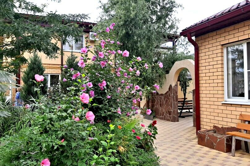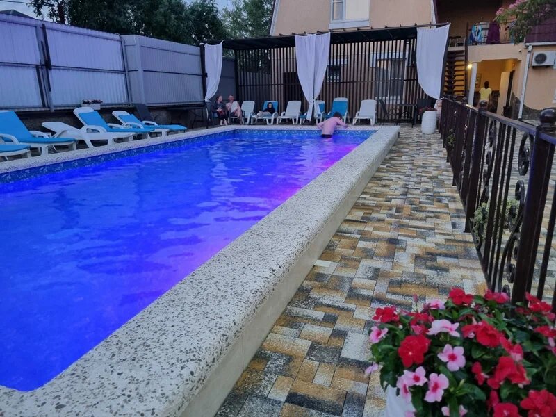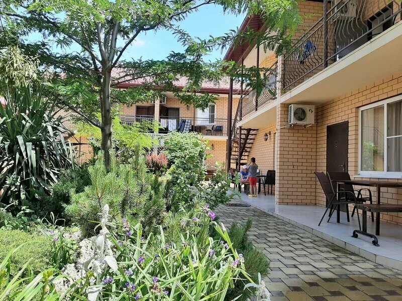 Отличный гостевой дом рядом с морем. Есть все удобства для отдыха с детьми. Новый бассейн с подвеской, мангалы, беседки, детские площадки, настольный теннис, столовая, кухня, прачечная. Проживание в двух этажных домах. Красивый двор, есть места для парковки.