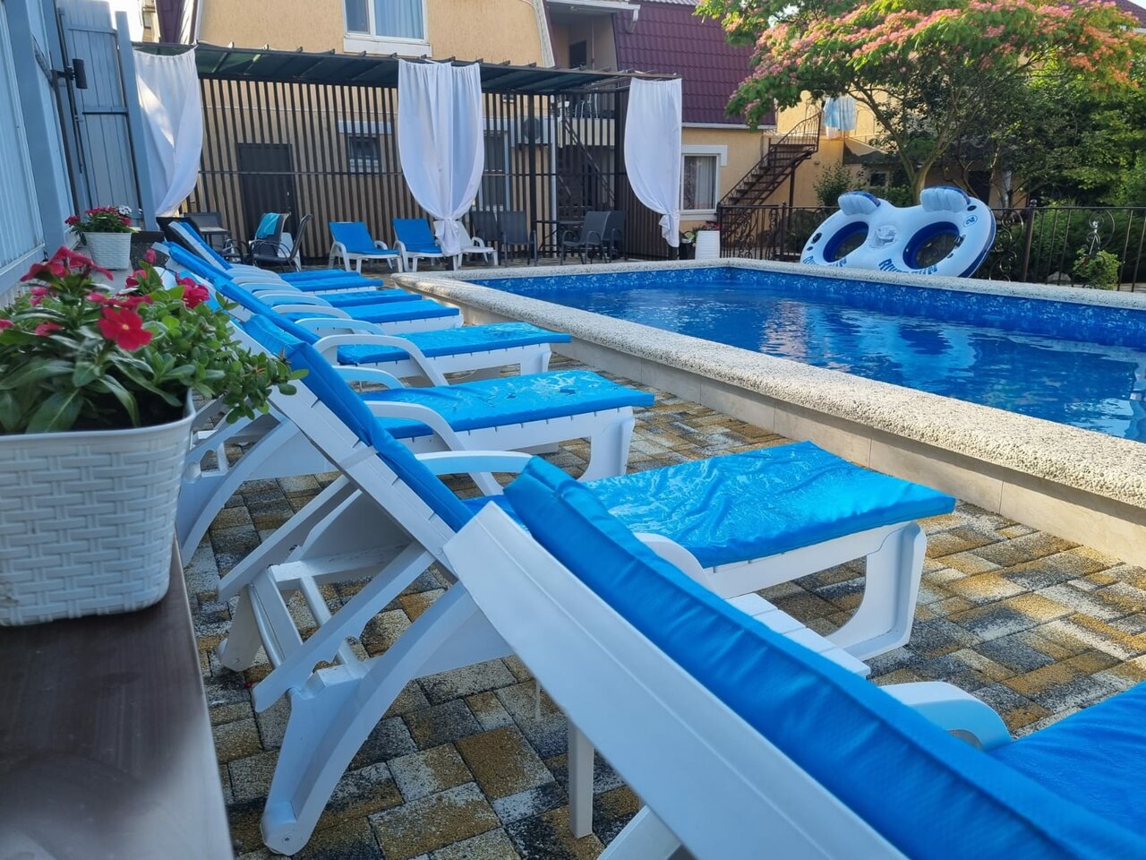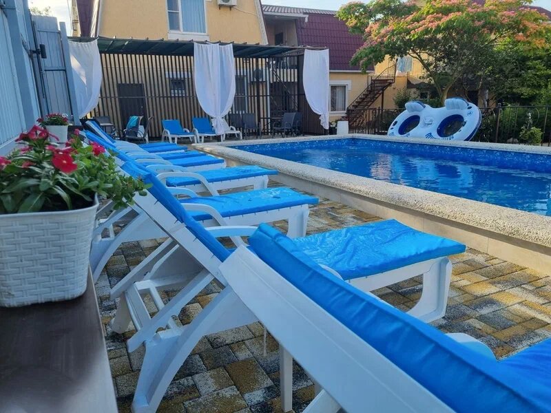 Отличный гостевой дом, комфортабельные номера, потрясающая ухоженная и чистая территория. Бассейн, шезлонги, беседка с мангалом-все на высшем уровне! До пляжа рукой подать, если выйти с территории гостевого дома, то слышен шум моря на пляже просто невероятные закаты, хотя бы ради них стоит приехать