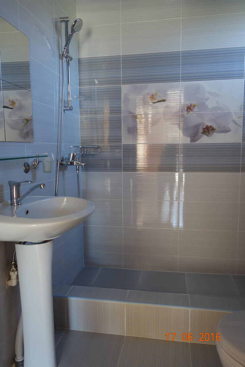 Жили большой семьей. Шикарный номерной фонд. Рядом пляж. Есть мангальная зона, общая кухня, бассейн с лежаками (когда на море шторм — отличный вариант), стол для тенниса, площадка, качели. Номера с кандиционерами, душем, уборной. Также есть столовая, но заказывать в ней надо заранее, что не очень удобно, поэтому в ней не питались.