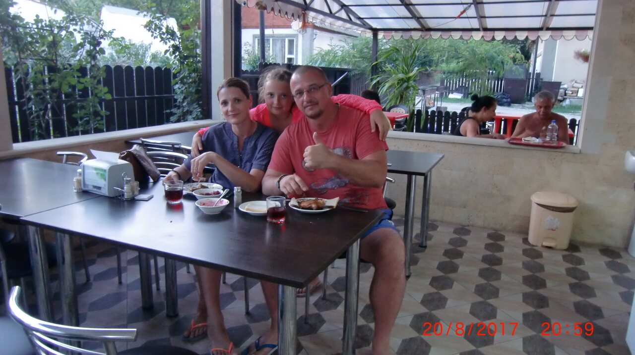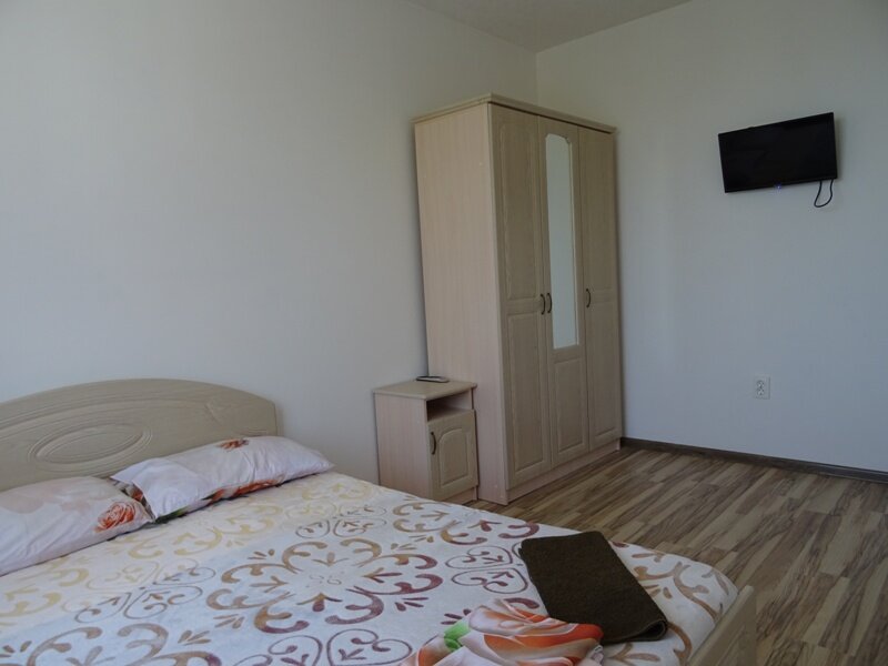 Гостили всего 3 дня. Очень аккуратно, чисто в номерах. Кондиционер, шкаф,коплект полотенец, холодильник. Каркасный бассейн-чистят каждый день, детям батут, детская площадка, плав. средства на выбор. Очень радушный хозяин. Своя столовая. До моря- минута. Пляж полупустой, правда без признаков цивилизации(нет шезлонгов,зонтов, веранд и т. д. ) до центра 3 минуты.