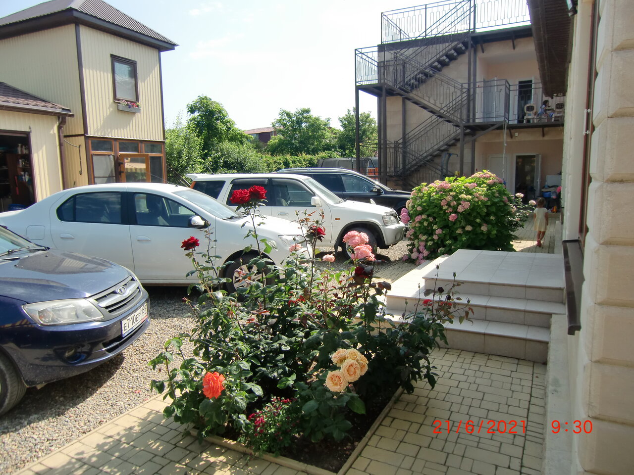 Были в июле 2024 года. Всё очень понравилось! Хозяин молодец, держит всё в чистоте и порядке, всё подскажет и расскажет. Парковка имеется небольшая, но платная. Есть бассейн и лежаки в небольшом садике, так же на крыше есть зона для загара. Огромный плюс собственная столовая, кормят замечательно, между отдыхом и путешествиями кушали только у нас. Расположение отличное, рядом и магазины и аптека. Наша семья рекомендует! Рядом Голубицкое, там полно магазинов и парков.
