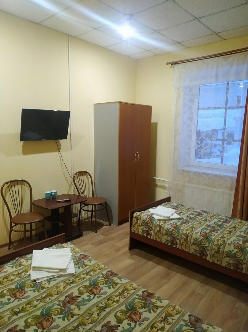 Гостиница застряла где-то в 90-х. Один холодильник на этаж, еду подписываем чтоб соседи не съели. Как это спасает я не понял, но проживающие верят в этот оберег. При -10 на улице, горячей воды в кране так и не дождался. Я уверен, если бы тут поселился Глеб Жиглов он был бы рад, но это в 50-х хорошо, в 2023 это каменный век. Швы плитки в плесени. В номере было холодно, с учетом батарее на всю стену и дополнительного обогревателя, что будет в -20 страшно представить. Постельное белье надо застилать, не могу сказать что это минус, но когда ты приезжаешь в гостиницу в 12 часов ночи после суток в поезде, желания застелить кровать отсутствует напрочь.