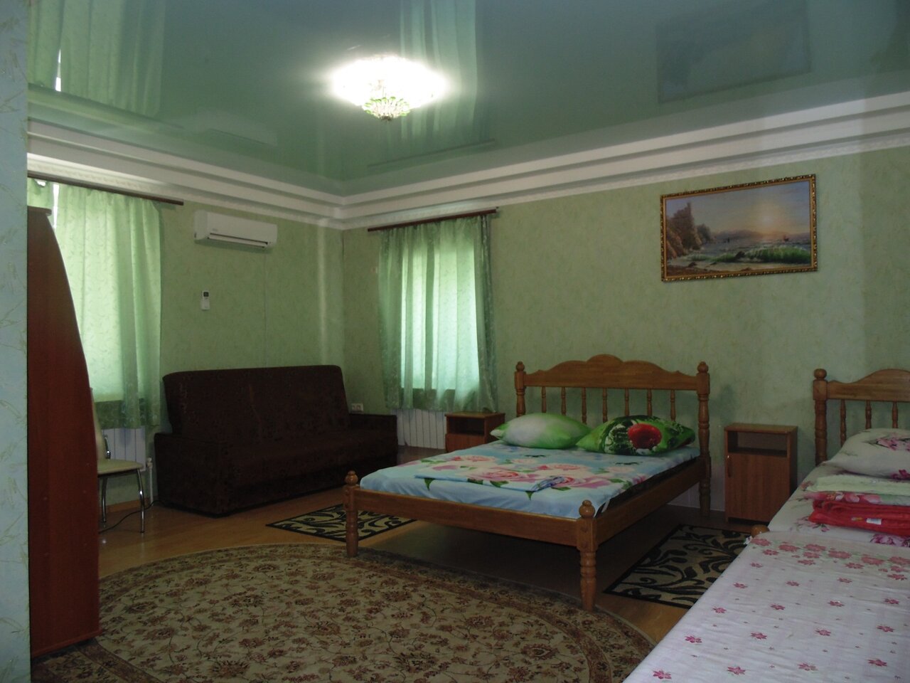Спасибо Нино за тёплый приём. Мы сняли номер на троих взрослых и одного ребёнка трёх лет. Номер огромный 25 метров квадратных. Две двухспальные кровати, холодильник, кондиционер, телевизор и огромный совмещённый санузел. .