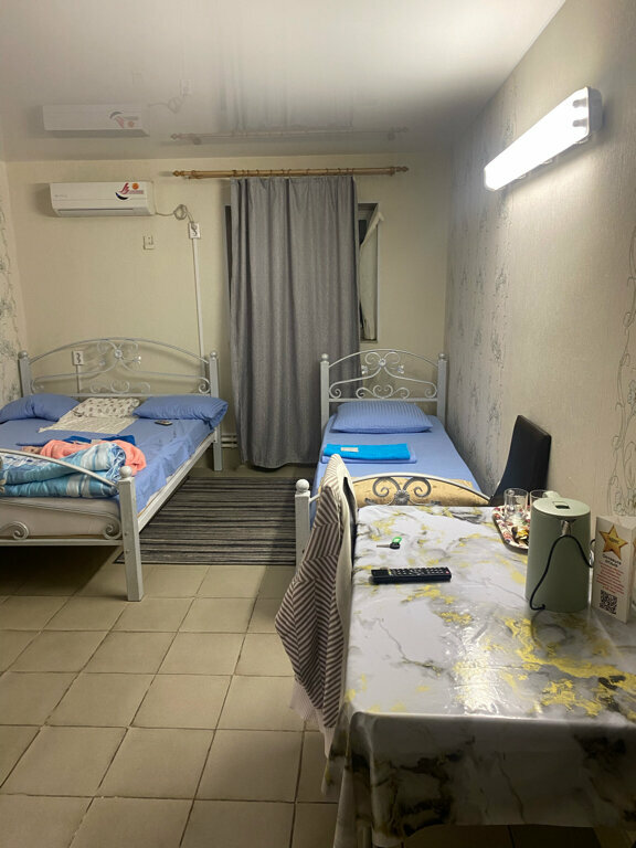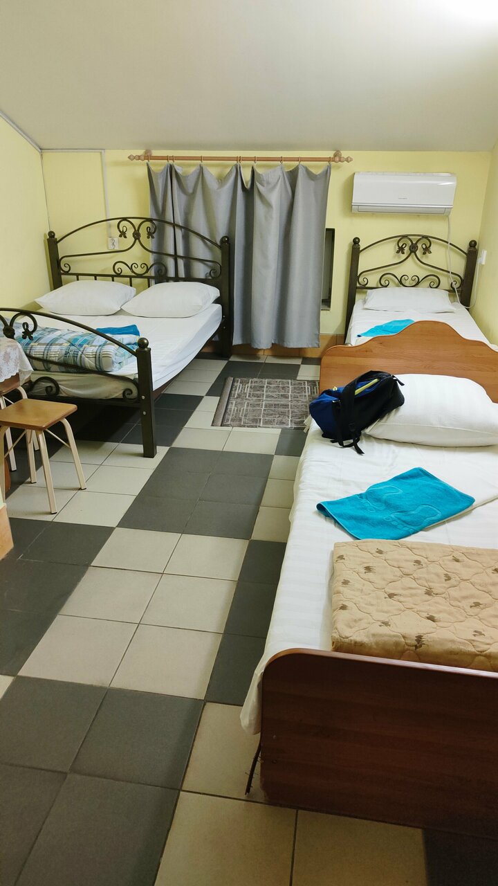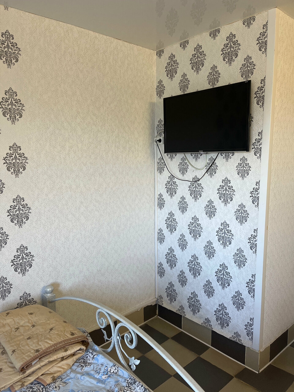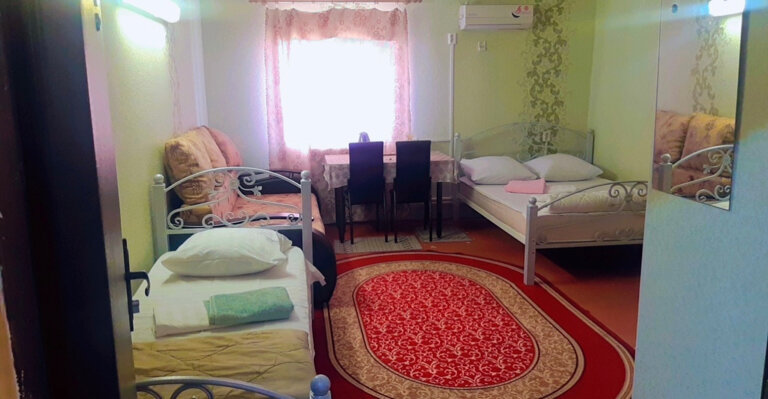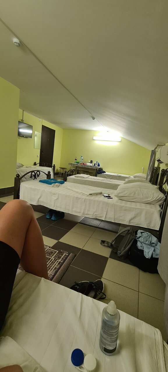 Кровати с матрацами норм, есть телек, кондей (не включали) и чайник со стаканами, но всё остальное просто отврат за 2500 (3-х местный): туалетной бумаги нет, как и всех туалетных принадлежностей, всё грязное, обои отваливаются, москитка на окне порвана полностью, душ с туалетом отдельная история, слышимость колоссальная. Для ночлега на 1 ночь сойдёт, но не за такие деньги. Не советую…