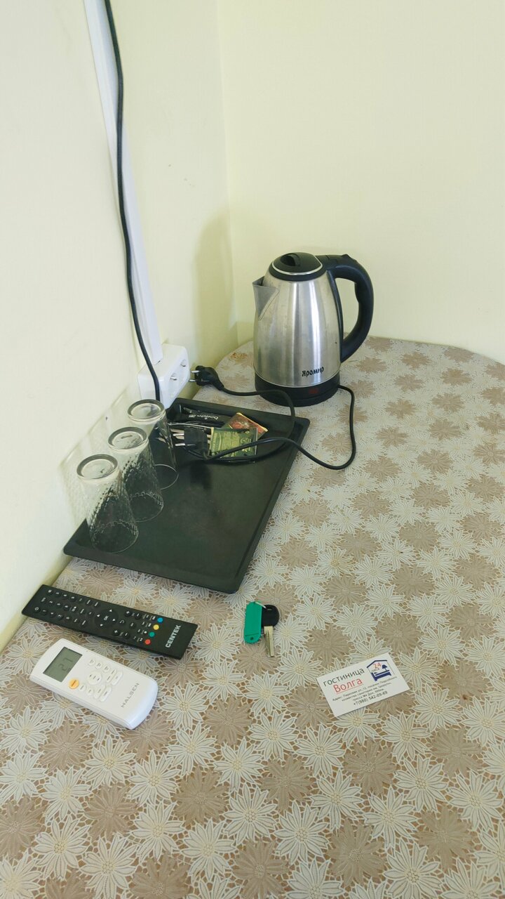 Хорошая гостиница!В номере имеется чайник,чай и кофе в пакетиках,сахар.Есть холодильник,телевизор.Также на хорошо застланных,с плотными матрасами, кроватях находились полотенца.В номере чисто и уютно.Вешалки,зеркала,стол, кондиционер-всё есть! Еда вкусная и разнообразная! Персонал добрый и отзывчивый! Спасибо,за прекрасное обслуживание!