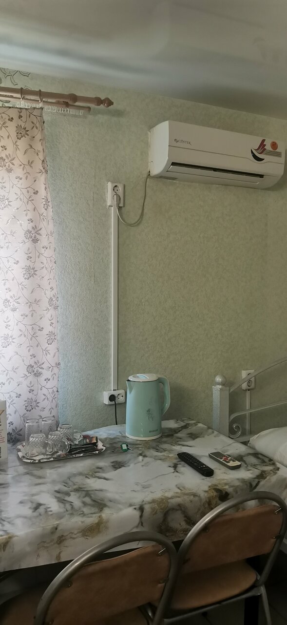 Останавливаюсь уже не первый год, всегда все супер, уютные номера, есть чайник. Кружки. Сахар полотенце. Шампунь. Телевизор, кондиционер, все чистенько. Так же есть столовая, где с дороги можно покушать очень вкусную шурпу, или щии, цены очень демокротичные, порции хорошие, в общем рекомендую.
