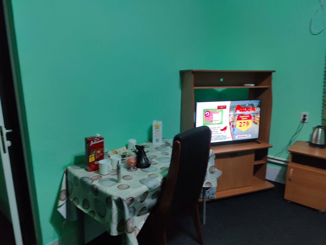Большой номер, удобные матрицы, в номере холодильник, телевизор, чайник, чай, кофе, отзывчивый персонал