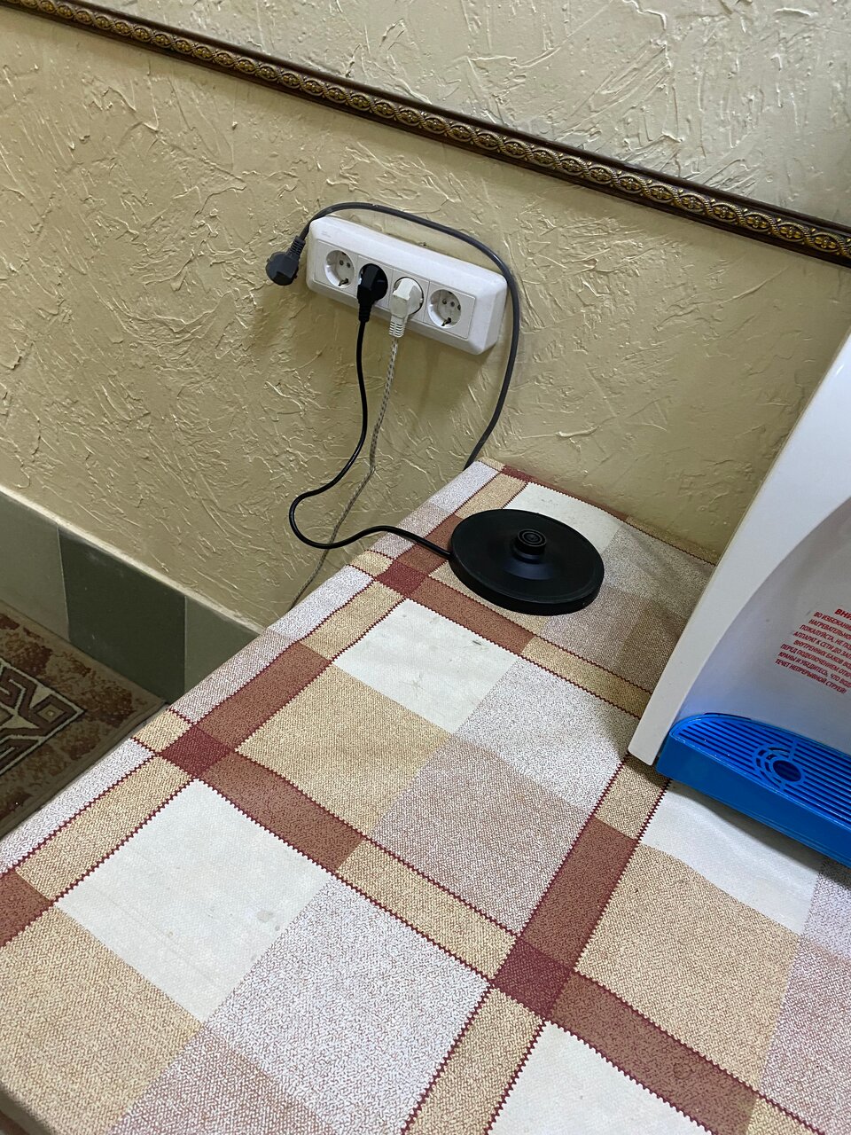 Удачное решение это микроволновка, кулер и большой холодильник с морозилкой на ресепшене. Номер чистый, постельное бельё свежее, выглажено с душой. Из минусов — сантехнику пора заменить, в номере подтекал кран.