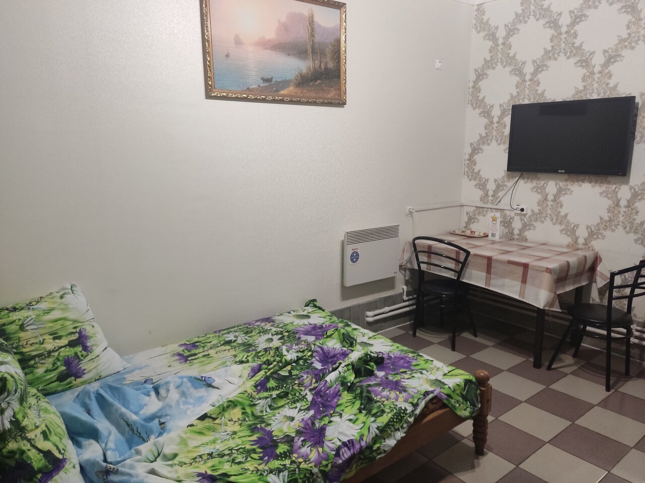 Были в двухместном номере с мужем, ночевали одну ночь. Номер большой, чистый. На стене висел обогреватель, в рабочем состоянии, было даже жарко. В душе прохладно. Отсутствовали одноразовые средства гигиены. Питьевой кулер для воды не работал, воду наливали из под крана. Если бы не эти мелочи, то в целом нормально.