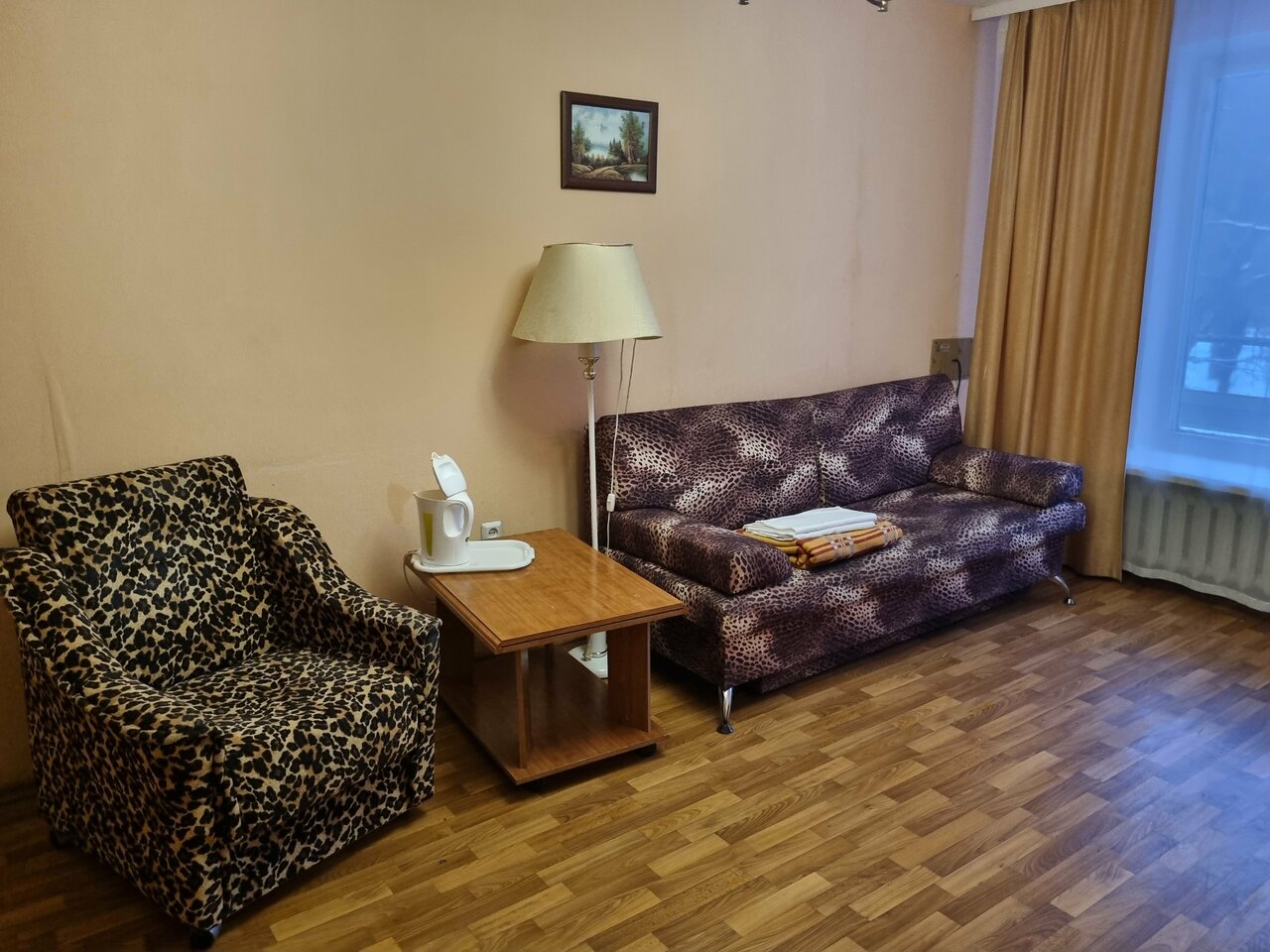 Май 2024 года. 2х комнатный ,, люкс’. Прихожая 1кв.м,с напольной вешалкой и пуфом. Не повернуться. Санузел 2кв.м, умывальник, душевая кабина, унитаз. Не повернуться. Полок для принадлежности нет, вешалки для полотенец см. фото. В гостиной мебели по min. Стеллаж больше подходит для камеры хранения. Двух одинаковых стульев не нашлось. Спальная не оборудована от слова совсем. Две тумбочки без ящиков, больше похожие на табурет, и металлическая этажерка. Таких ,, люксов’ я не встречал. На сайте всё обман.