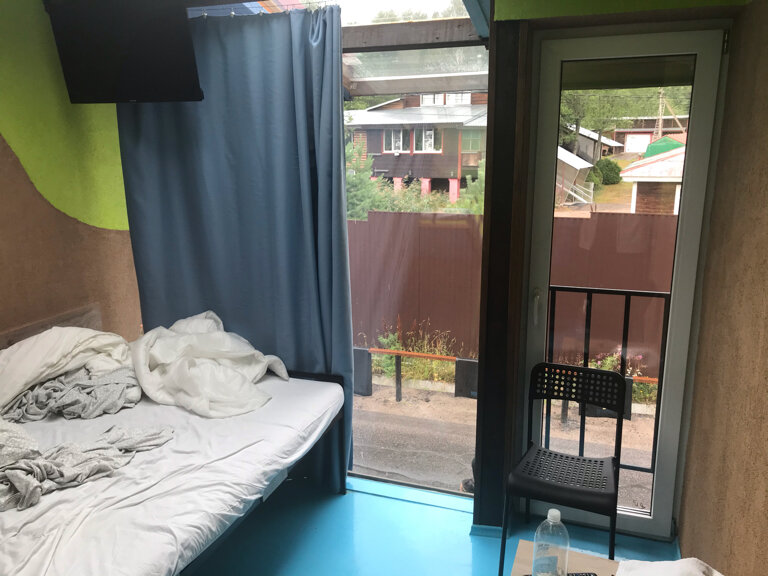 В сарае с кингсайз кроватью в целом жить лучше, чем в палатке, но если ищете что-то приличное — вам не сюда. Все грязно-обшарпанное, электричество от РЖД, поэтому оно пропадает вместе с водой, так как насос электрический.