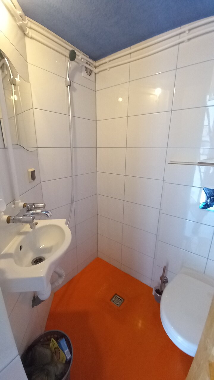 Хорошие номера. Размещалась в двухместном, санузел внутри. Как я поняла, все номера на втором этаже здания. Отопление необычное. Окна панорамные.