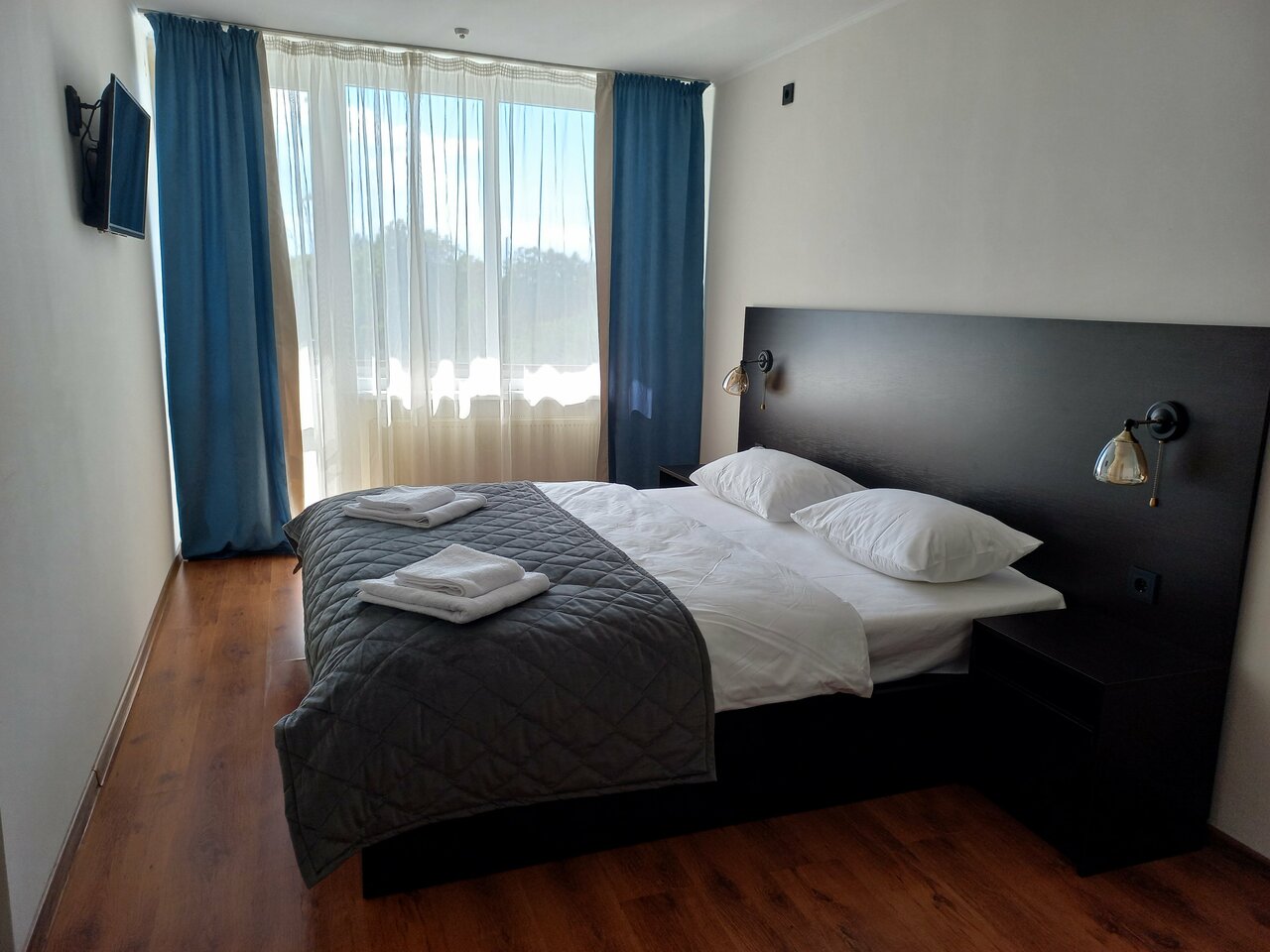 Обходите стороной! За эти же деньги можно найти нормальный отель в Светлогорске. Кстати, автобусы ходят плохо, такси тоже. Мы ловили машину. Номера убогие, кровати ломаные, воздух спертый. Одно полотенце. Страшно сесть и что-то положить. Море очень далеко. Завтрак очень дешевый. Колбасу и сыр страшно есть. Ключи от комнат лежат без присмотра. Может взять, кто угодно. На территории домики и бассейн. На выходные они были сняты, до 1 часу ночи мы ‘были’ на дискотеке, купанье, фейерверке. Спать невозможно. Бррр… денег не вернут