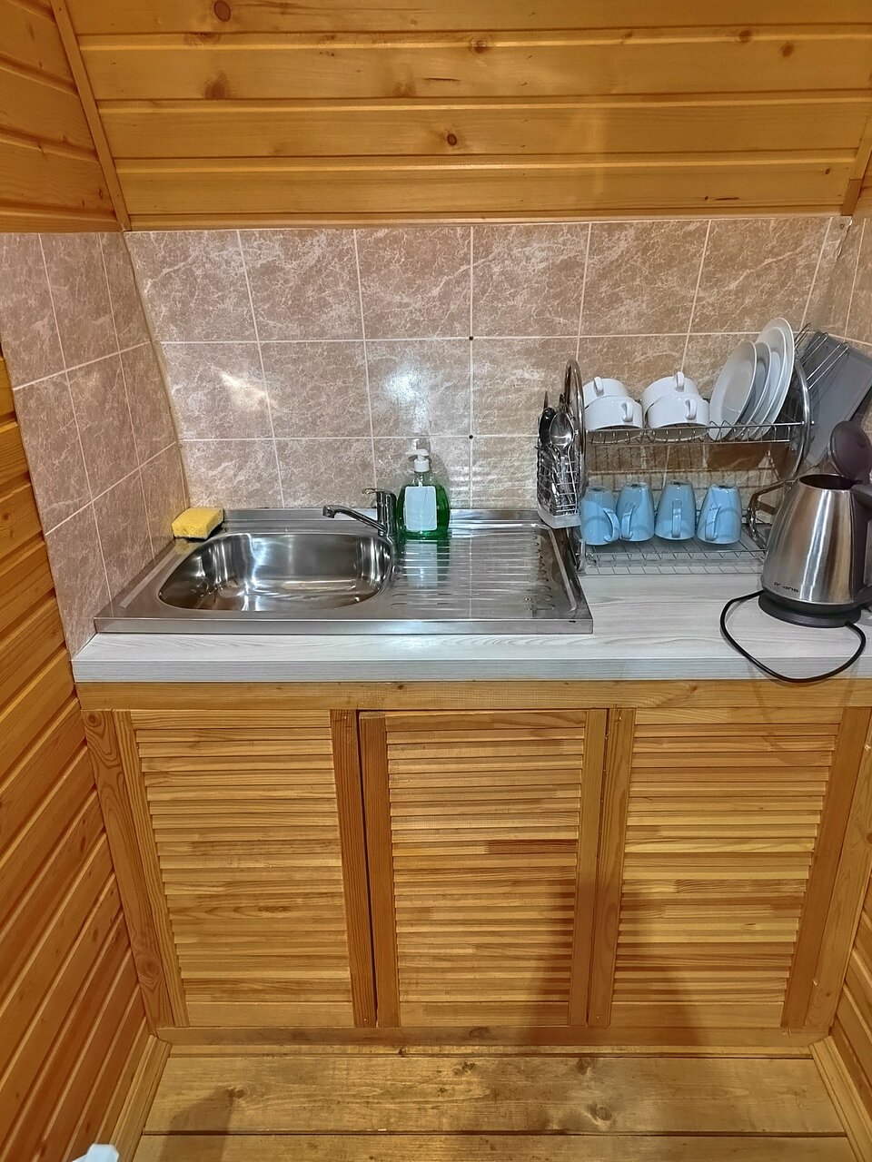 Все очень понравилось и кухня тоже , снимали домик семьей 4 человека , по грелись в сауне , все чисто и комфортно советую