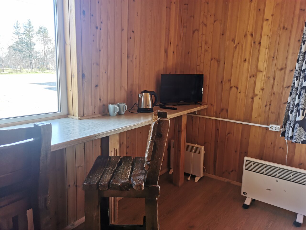 Останавливались вдвоем с двумя детьми в бунгало в -23 градуса, все отлично, тепло. Теплый пол в санузле, пара часов сауны входит в стоимость проживания, кухонный уголок, чайник, микроволновка. Возможно только холодильника не достает. В целом, нормальное место для ночлега. Кафешка в основном здании тоже неплоха, но вот завтраки ля шведский стол с 6 до 9аких-либо Можно воспользоваться сауной на пару часов. Каких нареканийпол в санузле