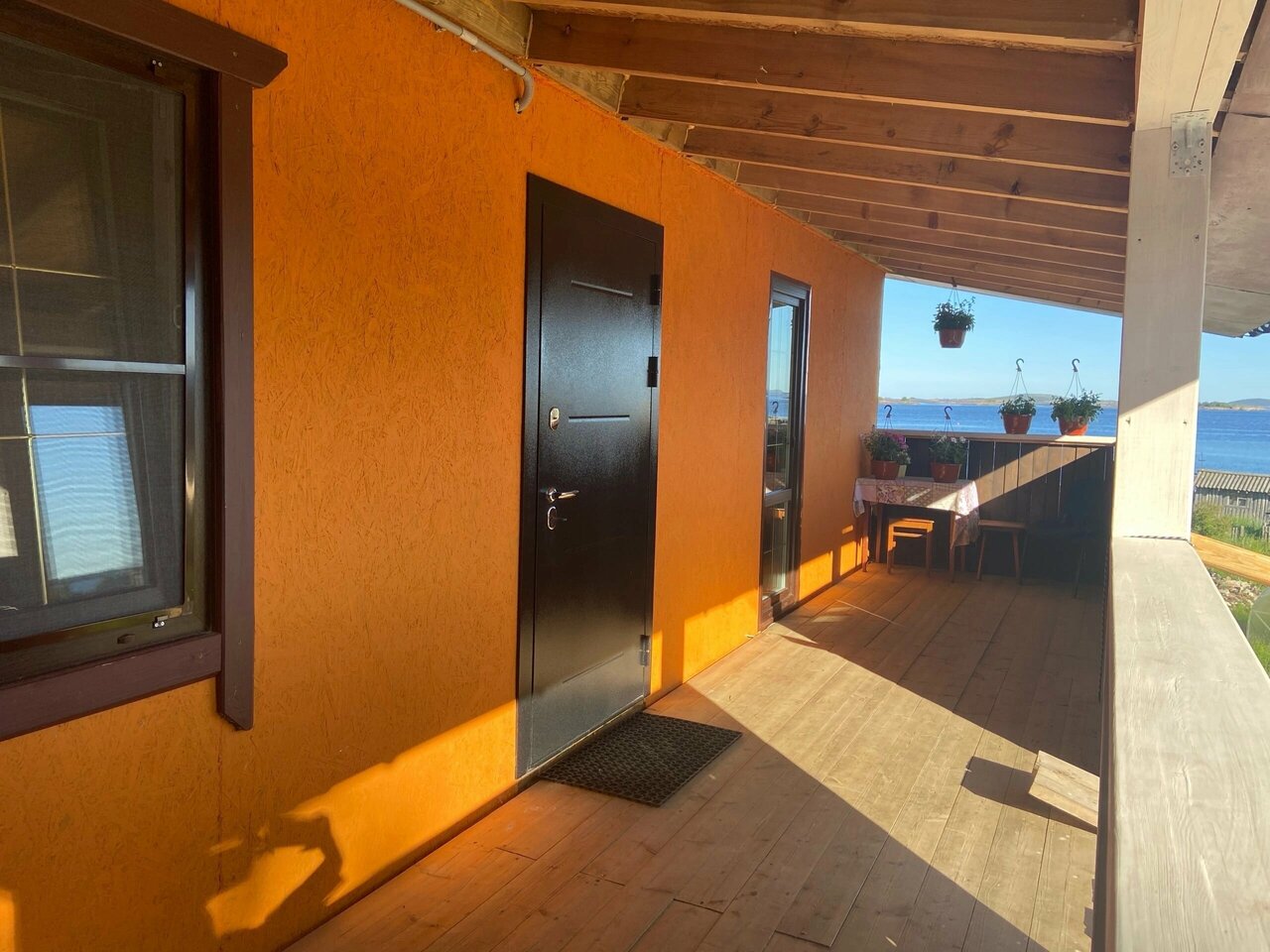 Все новенькое, хорошее расположение, вид с террасы и подъезд, рядом причал. Необходимо учитывать планировку: 2 комнаты, ванна, туалет и кухня. Можно целиком домик, но мы были на одну ночь и заселились уже вечером нам предложили комнату, пара заехала раньше. Отлично переночевали, посетили острова и поехали дальше!!! На причале снимали фильм Остров, есть остатки декораций, кому фильм ‘зашел’ интересно посмотреть.