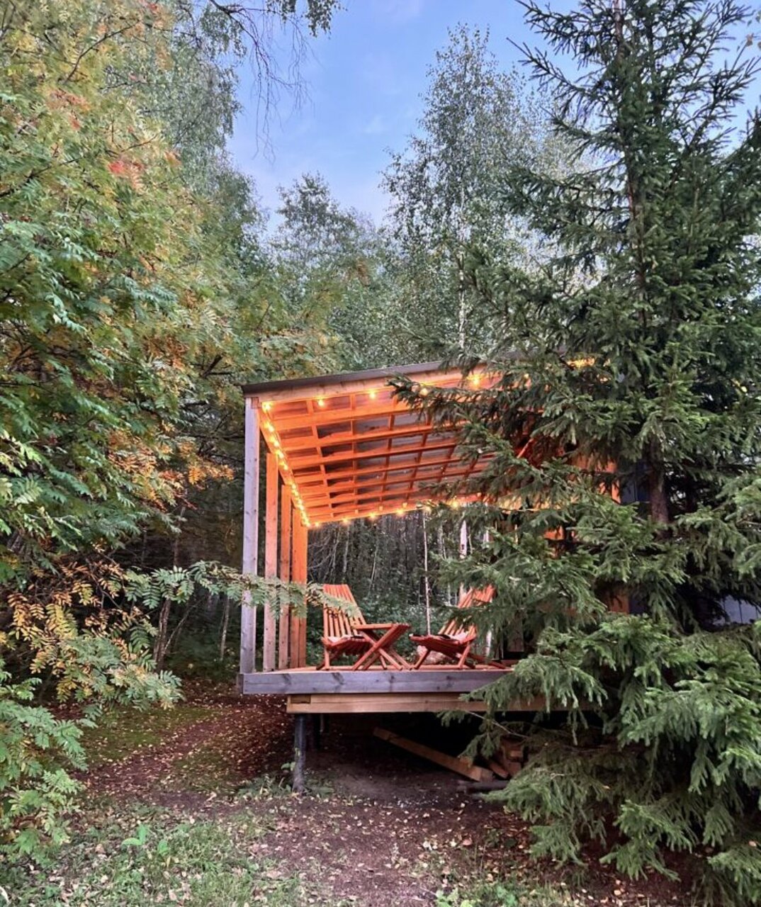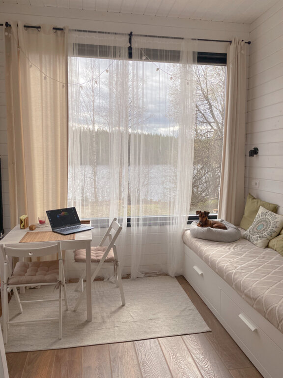 Полный восторг. Небольшой мега-уютный домик среди леса на берегу озера. С окном во всю стену. С теплым полом! Правила проживания(никакого курения, громкой музыки и воплей) — просто бальзам на душу таких мизантропов, как мы. Ради такого однозначно стоило сделать небольшой крюк и заселиться именно здесь. Однозначно рекомендую!