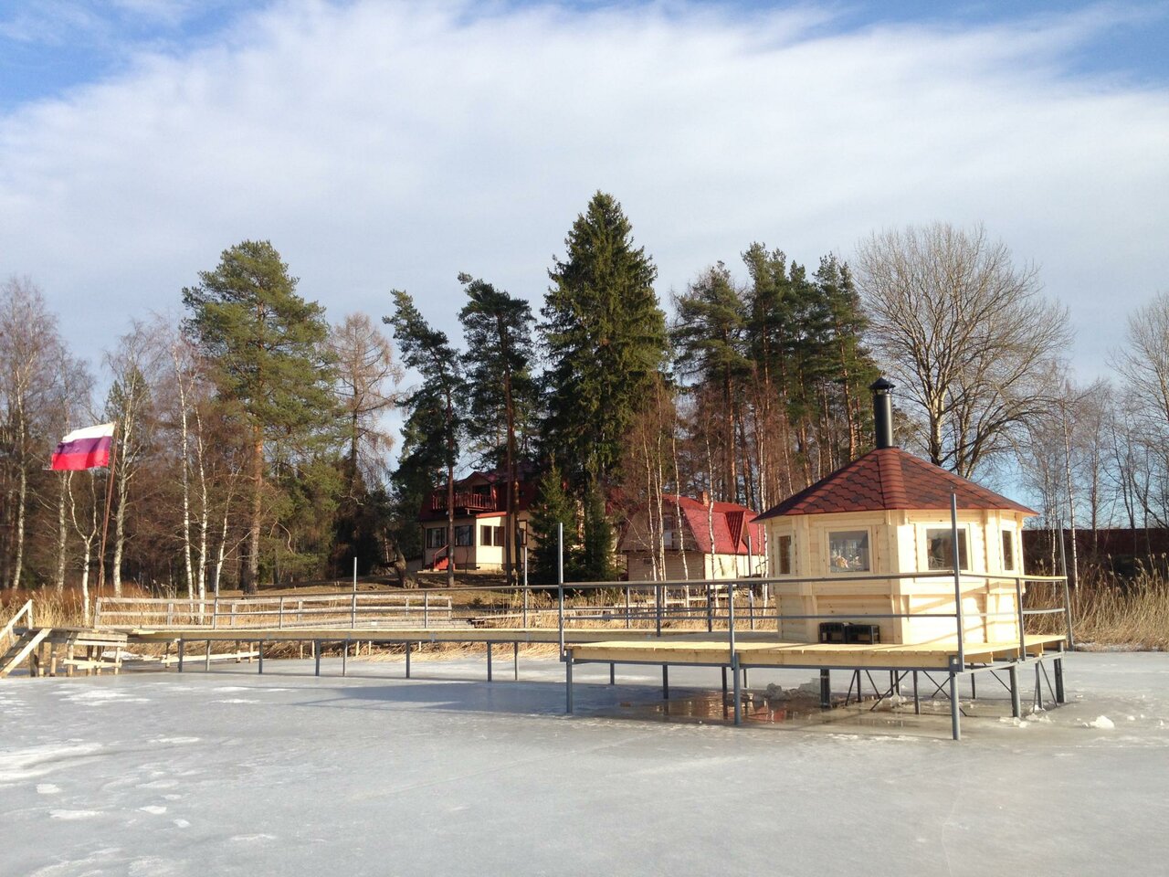 Неприятное впечатление. Устаревший формат базы отдыха с обветшалым евроремонтом, нестираным текстилем и пыльными медвежьими шкурами, за которой не ухаживают, а выдавливают последние возможные доходы. Даже мыло для рук разбавлено. Состояние домов плохое; помещения требуют ремонта. В душевых грязно, отваливается кафель, потолки отсыревшие, пахнет сыростью, нет элементарной вентиляции в санузлах; двери скрипучие-разбухшие. Уборки в номерах, судя по толстому слою пыли под кроватями, не проводятся. Запах затхлый. Окна грязные, снаружи паутина. Общий вид домов, беседок, двора, унылый, облупленный и заброшенный. Пирсы сгнили, наполовину отвалились, болтаются на одном гвозде. Из плюсов — постельное белье чистое, тепло, есть возможность самим приготовить еду на электроплитке, встретили ночью, приняли с собакой. Больше не поедем.