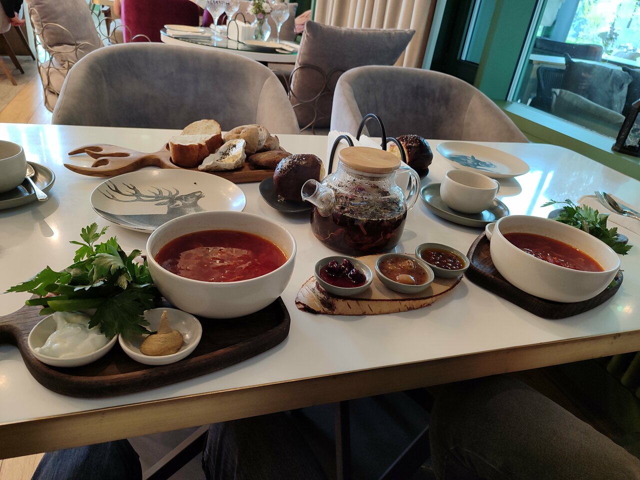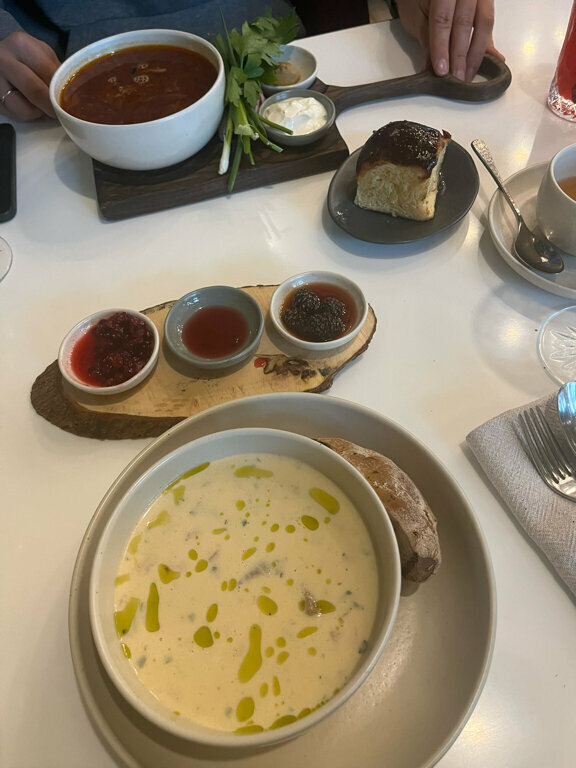 - Вкусная еда (корюшка, баклажан, фирменный копчёный борщ).