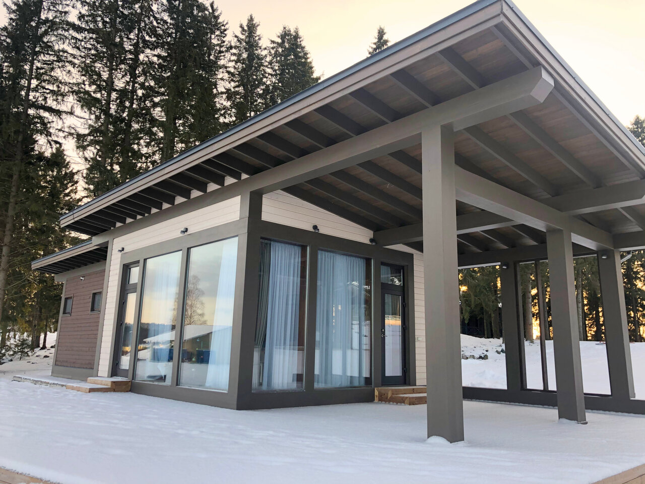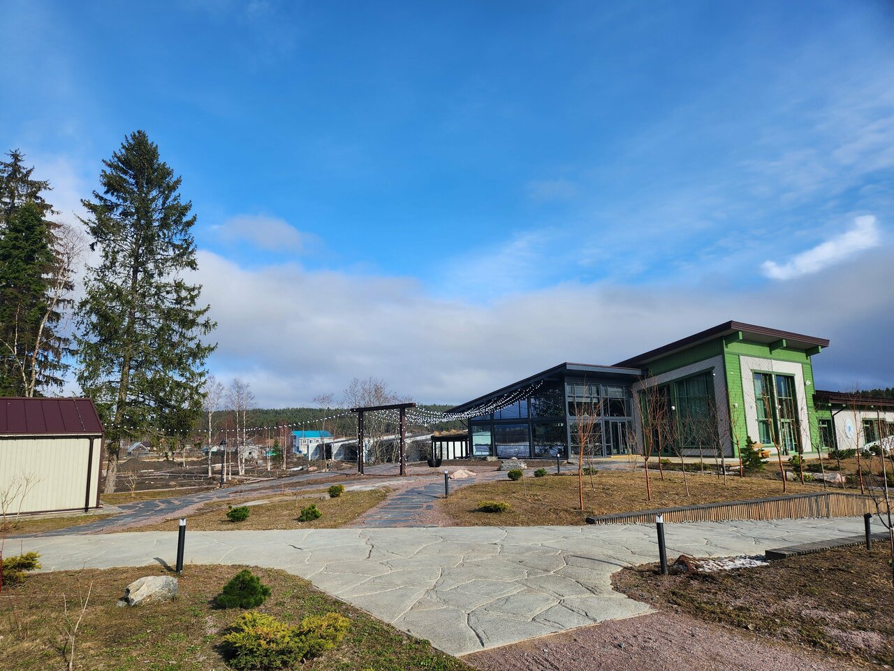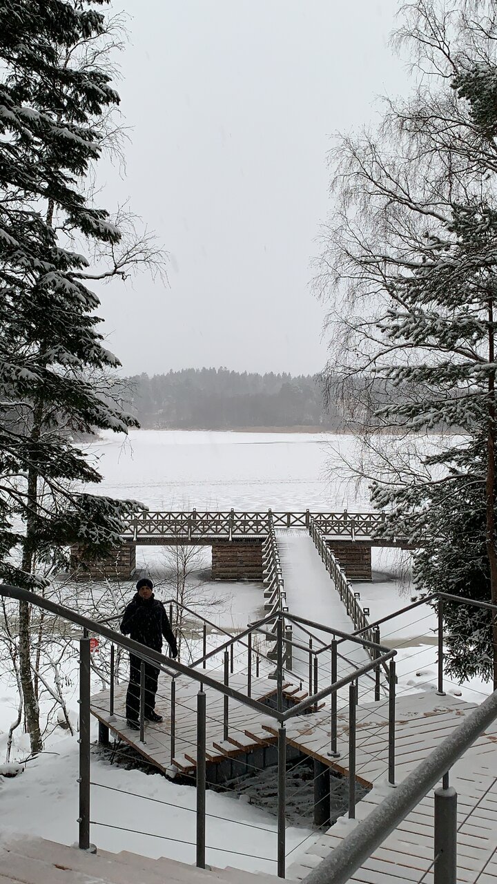Отель достойный. Все коттеджи новые. На территории есть 2 бани. Жили в большом коттедже на новогодние праздники. Очень стильный дом, ремонт замечательный и со вкусом в скандинавском стиле. По ощущениям, будто не в отеле, а у себя дома за городом. Есть, конечно, небольшие вопросы к персоналу, но в России пока только так. Ну и пока они на начальном этапе своего развития. Но! Все очень доброжелательные и готовы помочь. Дорожки исправно чистят во время снегопада. Территория очень симпатичная. Рядом озёра. Думаю, летом пейзаж будет восхитительный. И вишенка на торте — это ресторан при отеле! Только восхищение. Так и хочется воскликнуть как в одном фильме: ‘Целую руки повара!’ Всё вкусно с большой буквы ‘В’. Чувствуется, что владелец ресторана вложил в него душу. Ресторан на 5+. Да, недёшево. Цены как в московских ресторанах. Но это того стоит. Ну и в Сортавале пока немного достойных мест. Короче, рекомендую! И отель, и ресторан.