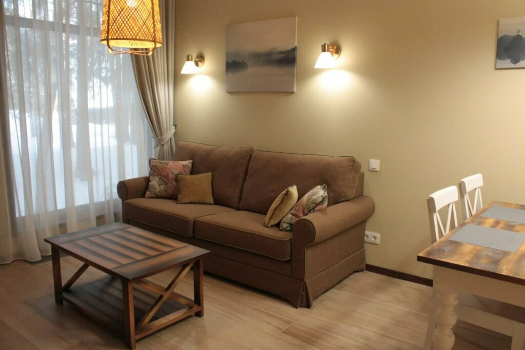 Отель предлагает: — Питание: ресторан, английский завтрак, доставка еды в номер. — Удобства: бесплатная парковка, сауна, баня, прокат велосипедов и лыжного снаряжения, детская площадка, игровая комната. — Сервисы: трансфер (платный), консьерж-сервис, химчистка, прачечная. — Для семей: детские кроватки, меню, коляски (платно).