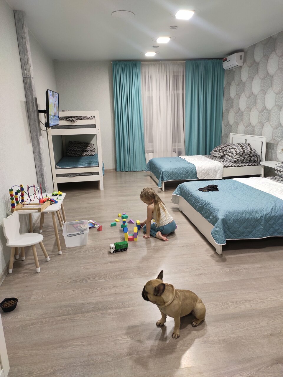 Понравилось, как встретили, разместили, показали где что и как. Оформление интерьеров современное и стильное, обстановка продумана для семей с детьми, как наша. Есть стиральная машина, гладильная доска, детский стульчик. И даже в кулере холодная вода не ледяная, специально чтобы дети могли пить, не простужаясь! Твёрдая пятёрка. Может только, подумать насчёт ограждения ступенек на лестнице второго этажа и уличного крылечка, также с точки зрения безопасности детей.