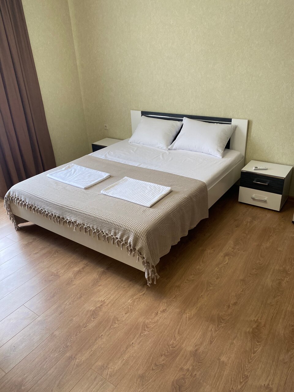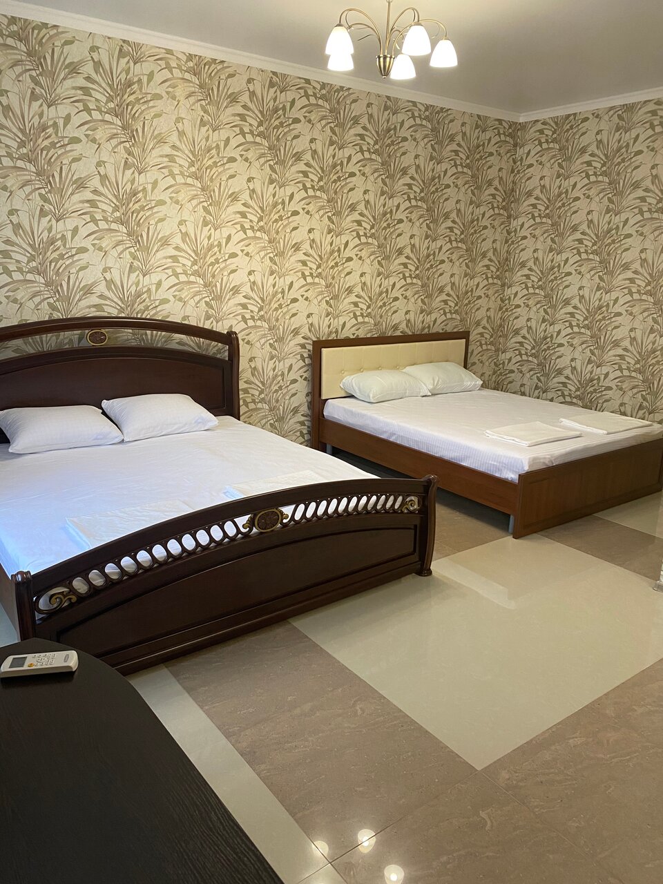 Отличный гостевой дом. Останавливались по дороге с отдыха. Доброжелательные хозяева, встретили ночью. Номер чистый, просторный, новая мебель, идеальное постельное белье, матрас удобный. Для ребёнка просторный диван. В номере кондиционер, микроволновка, чайник, кружки. Есть вариант заказать завтрак по меню из кафе. В холле есть холодильник, фен. Спасибо хозяевам за гостеприимство! Рекомендую!