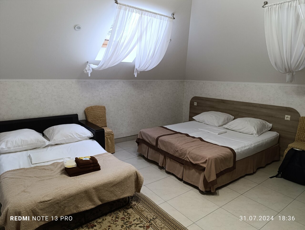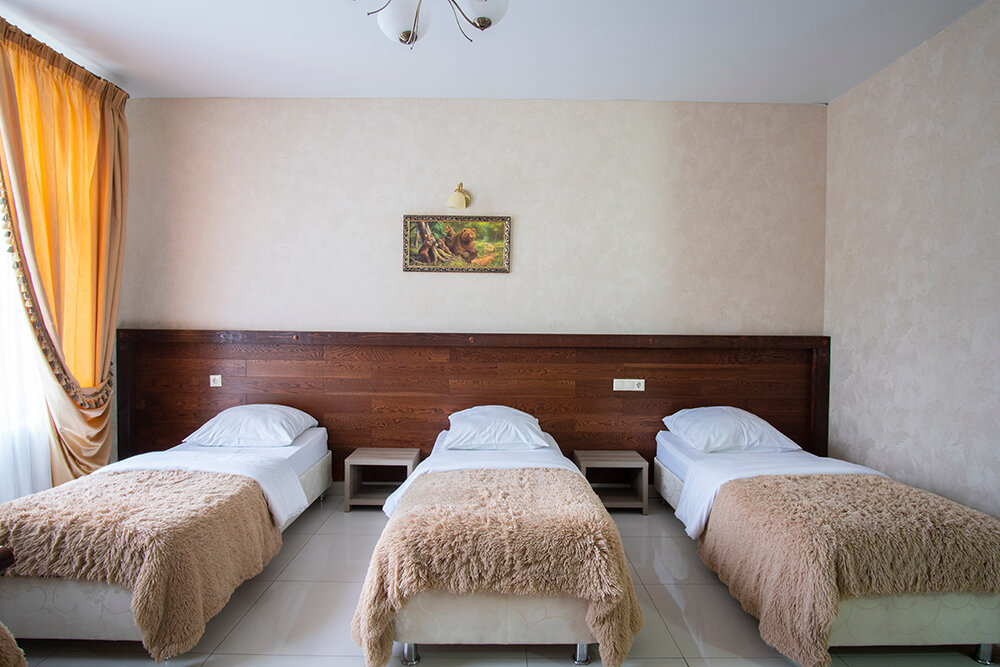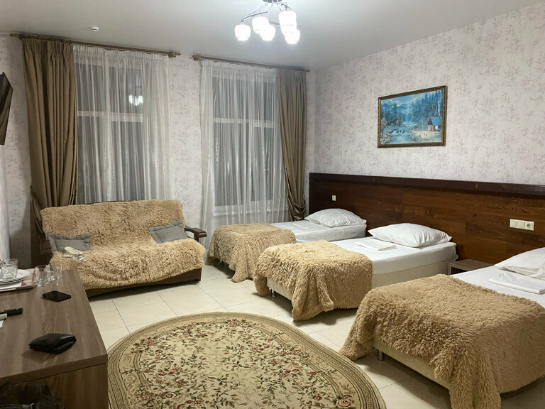 Отличный отель! Красиво, чисто, уютно. Номер (у нас был на четверых) большой, соседей не слышно. На территории отеля есть кафе с домашней кухней, кормят вкусно. Рекомендую.